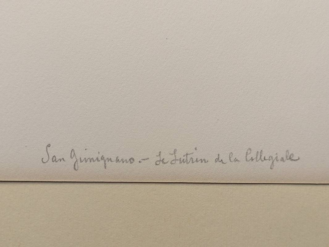 Opera in tiratura di 75 esemplari, facente parte della raccolta Impressions d’Italie. La presente tavola raffigura un leggio con un testo sacro appoggiato sopra, mentre sullo sfondo si scorge l’interno di una chiesa.