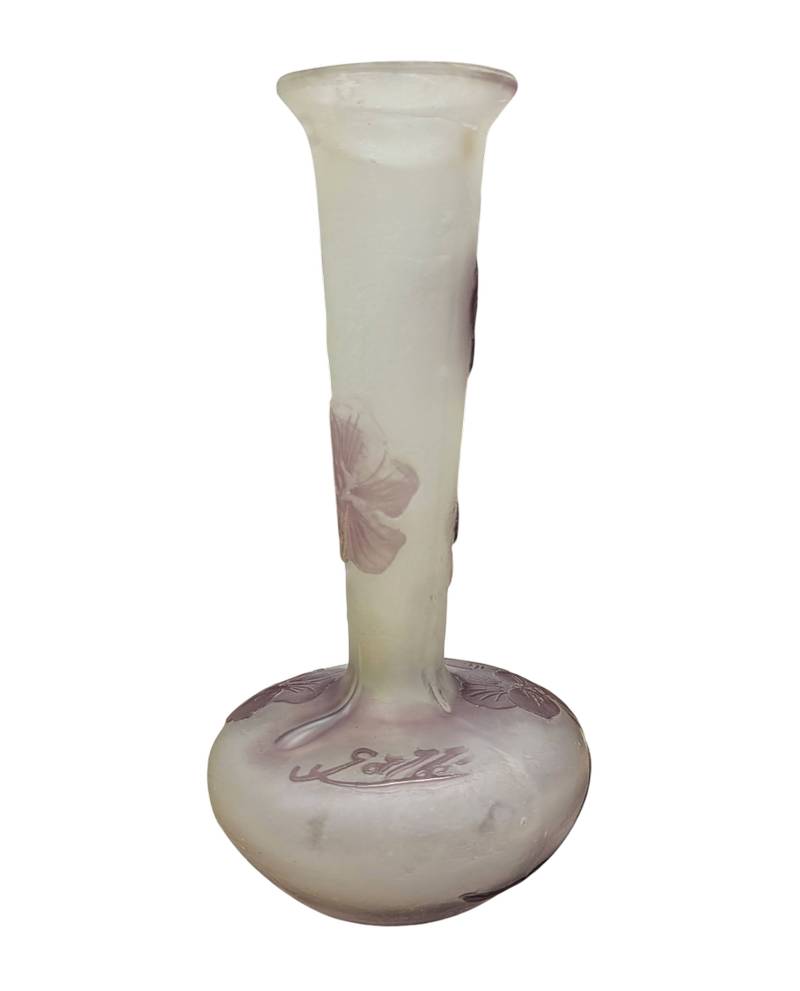 Piccolo vaso a stelo firmato Émile Gallé (Nancy, 4 maggio 1846 – Nancy, 23 settembre 1904), importante vetraio e decoratore francese.