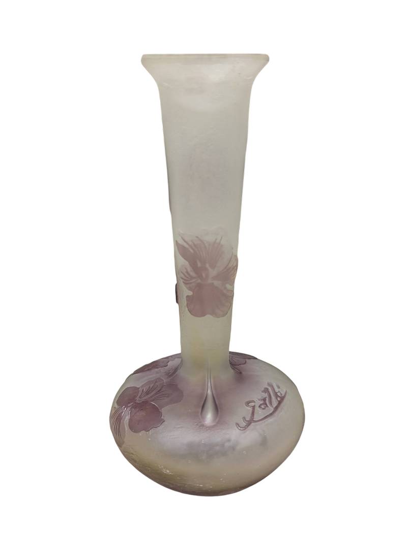 Émile GALLÉ (1846-1904) – Vaso a stelo in vetro cammeo con viole