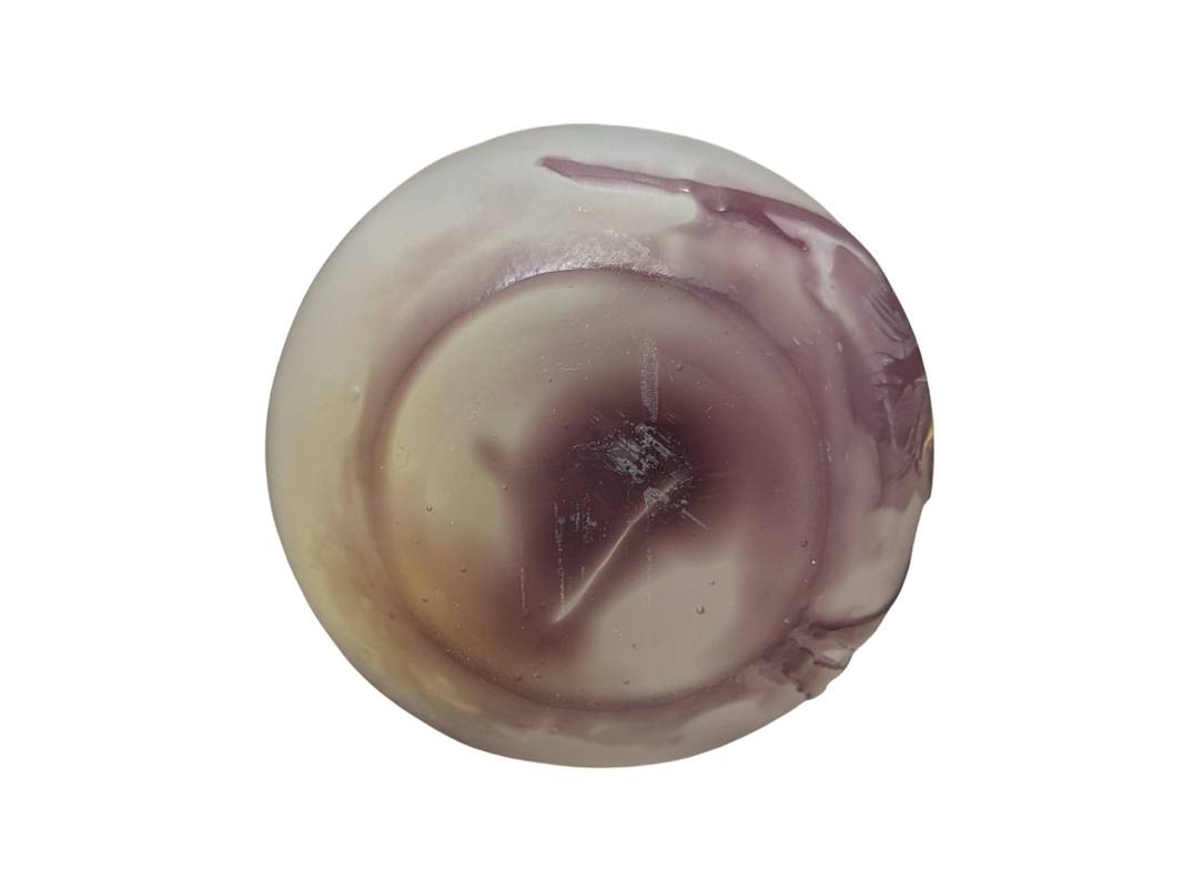 Vetro cammeo inciso all’acido con un delicato disegno di violette su fondo bianco-lilla.