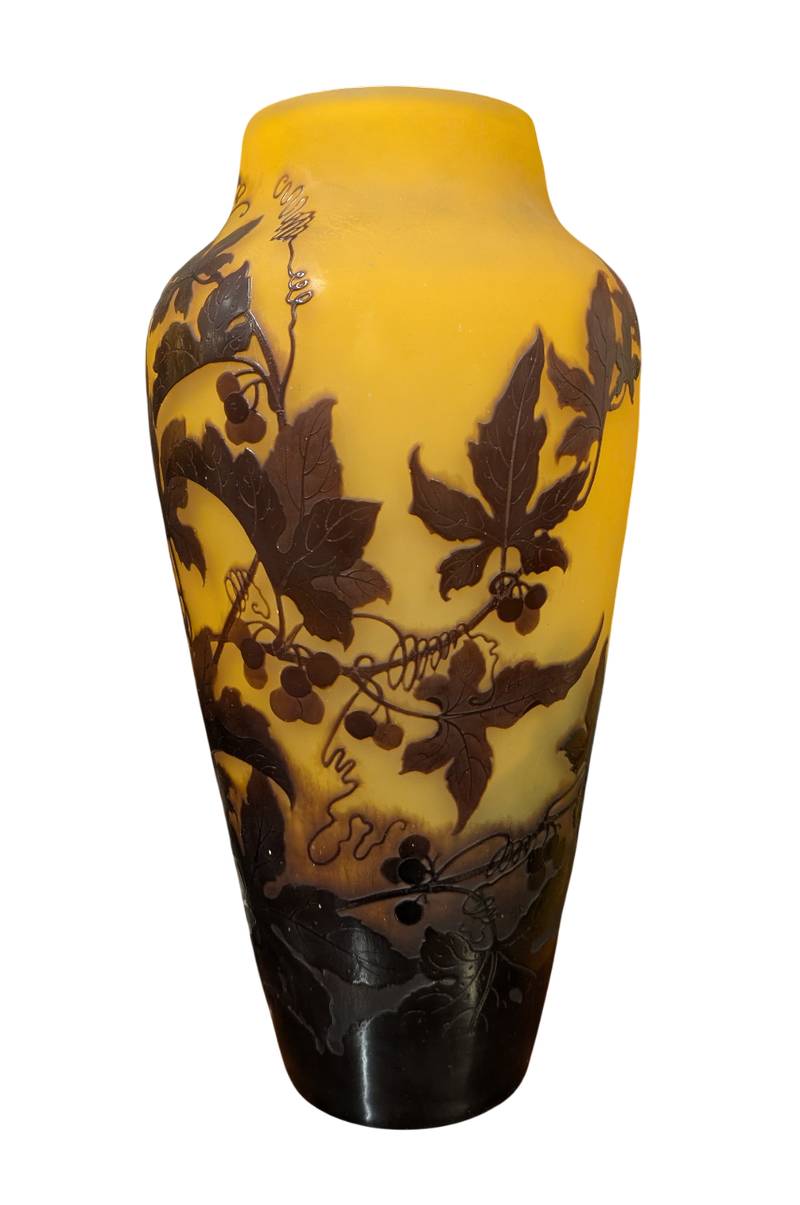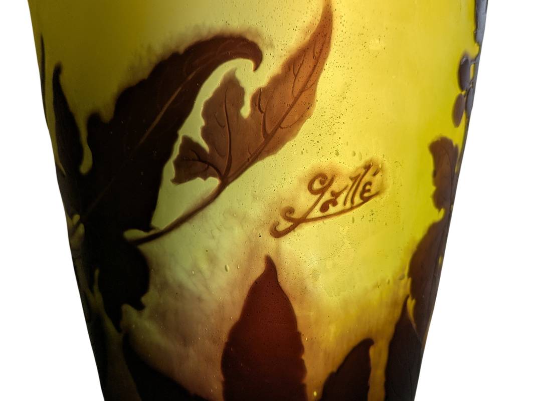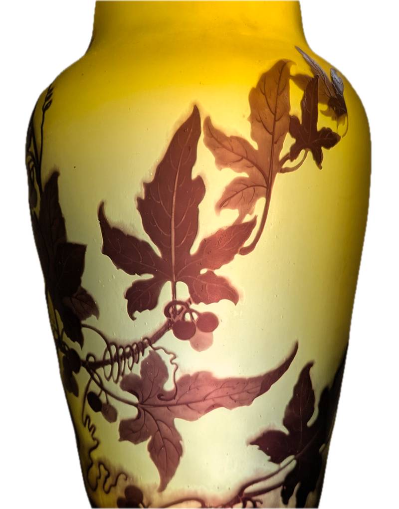 Émile GALLÉ (1846-1904) – Vaso in vetro cammeo con foglie di vite