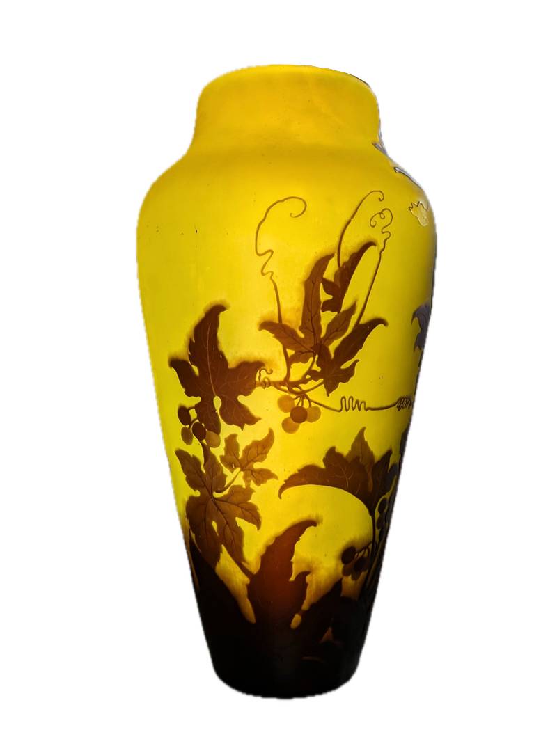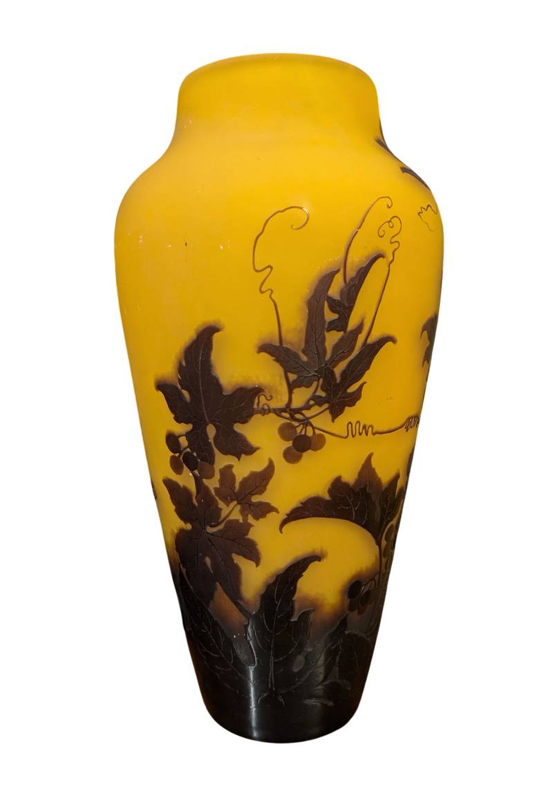 Vaso firmato in basso Émile Gallé (Nancy, 4 maggio 1846 – Nancy, 23 settembre 1904), importante vetraio e decoratore francese.