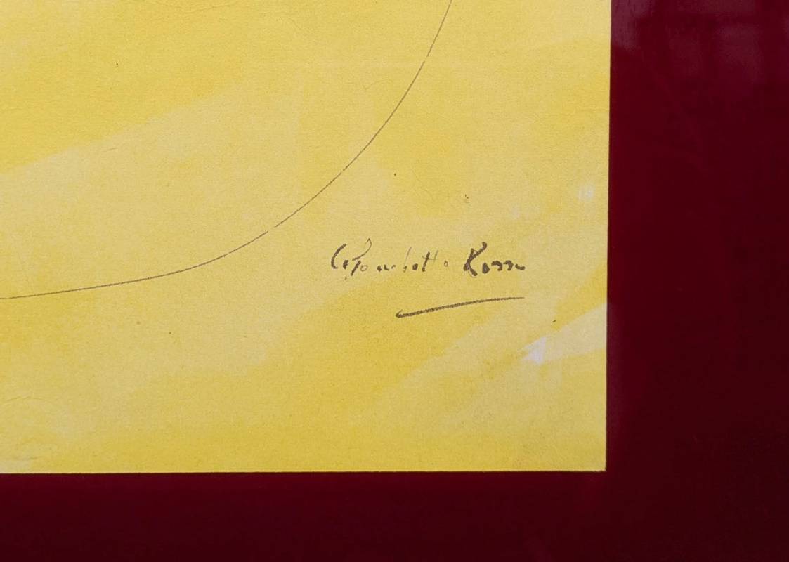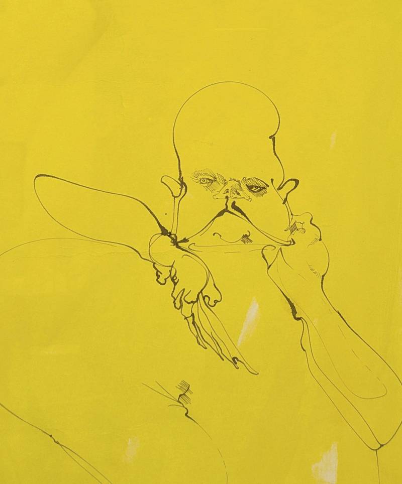 Disegno a inchiostro di china su cartoncino dipinto di giallo firmato in basso a destra Enrico Colombotto Rosso (Torino, 1925 – Casale Monferrato, 2013), pittore italiano.