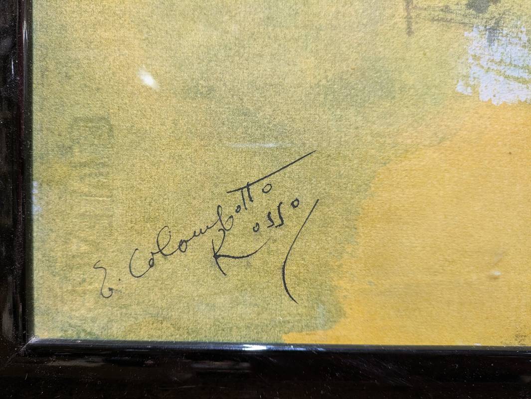 Dipinto ad acquerello su carta firmato in basso a sinistra Enrico Colombotto Rosso (Torino, 1925 – Casale Monferrato, 2013), pittore italiano.