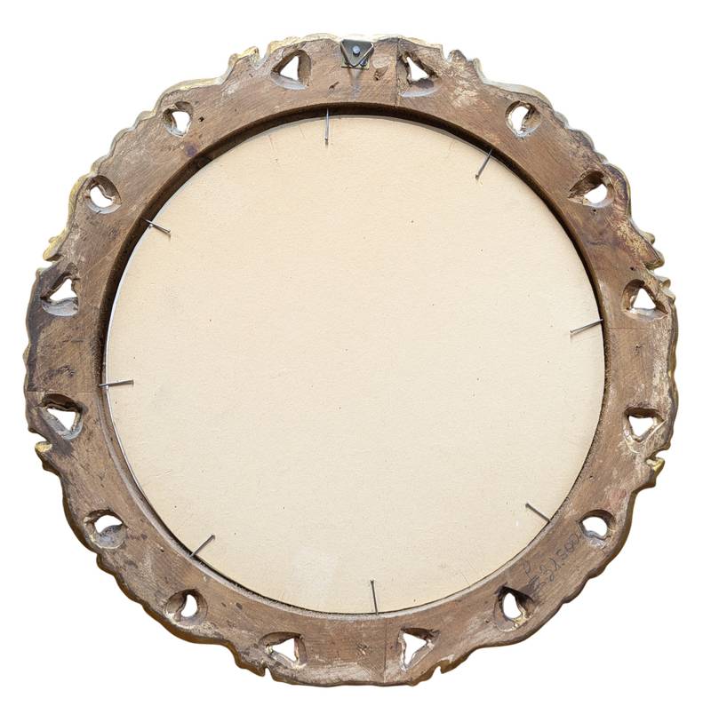 In ottime condizioni conservative come da fotografie, entro cornice rotonda scolpita e dorata con vetro.