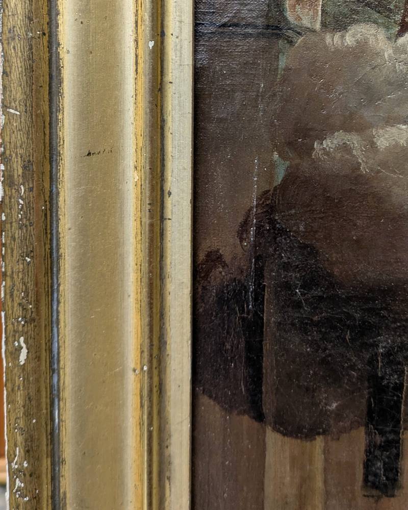 In ottime condizioni conservative come da fotografie, entro cornice dorata. Si segnalano alcuni segni del tempo e piccole mancanze nella doratura.
