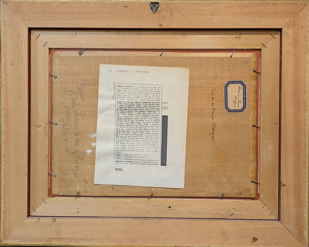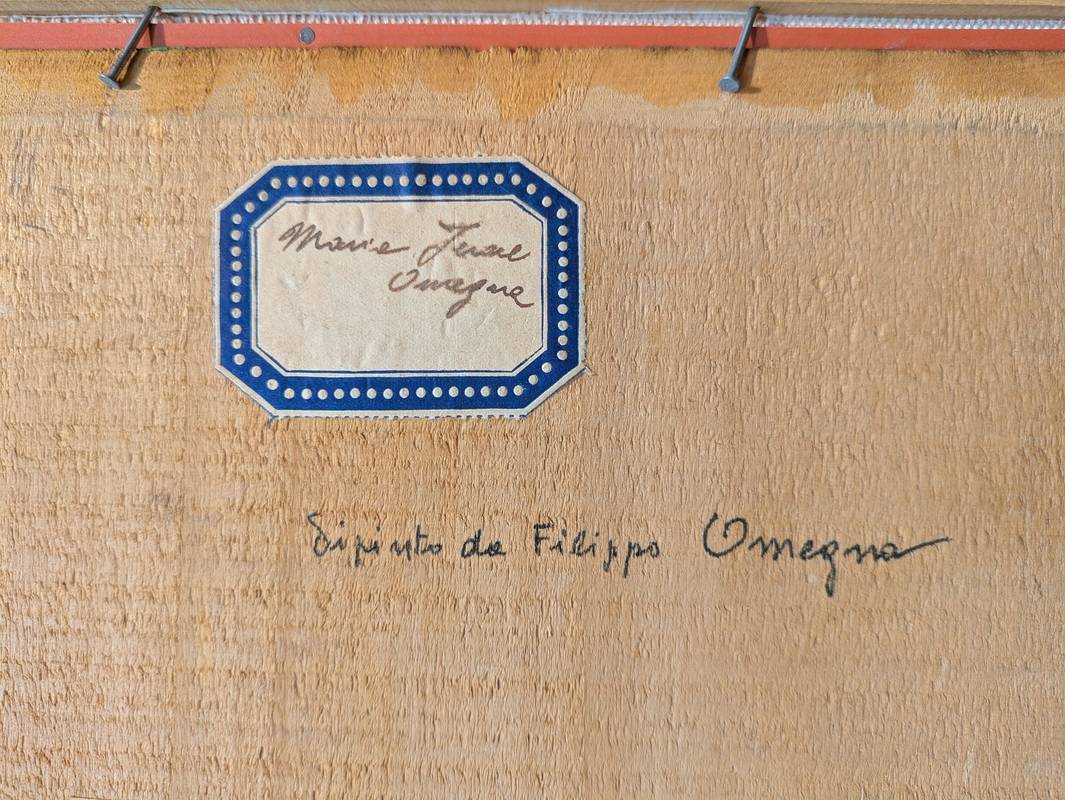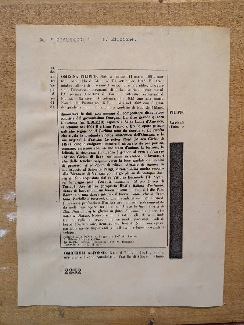 Dipinto a olio su tavola firmato in basso a destra Filippo Omegna (Torino, 11 marzo 1881 – Mondovì, 1° settembre 1948), pittore piemontese allievo di Giacomo Grosso.