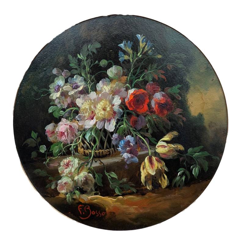 Dipinto a olio su cartoncino firmato in basso Francesco Bosso (1864-1933), pittore italiano.