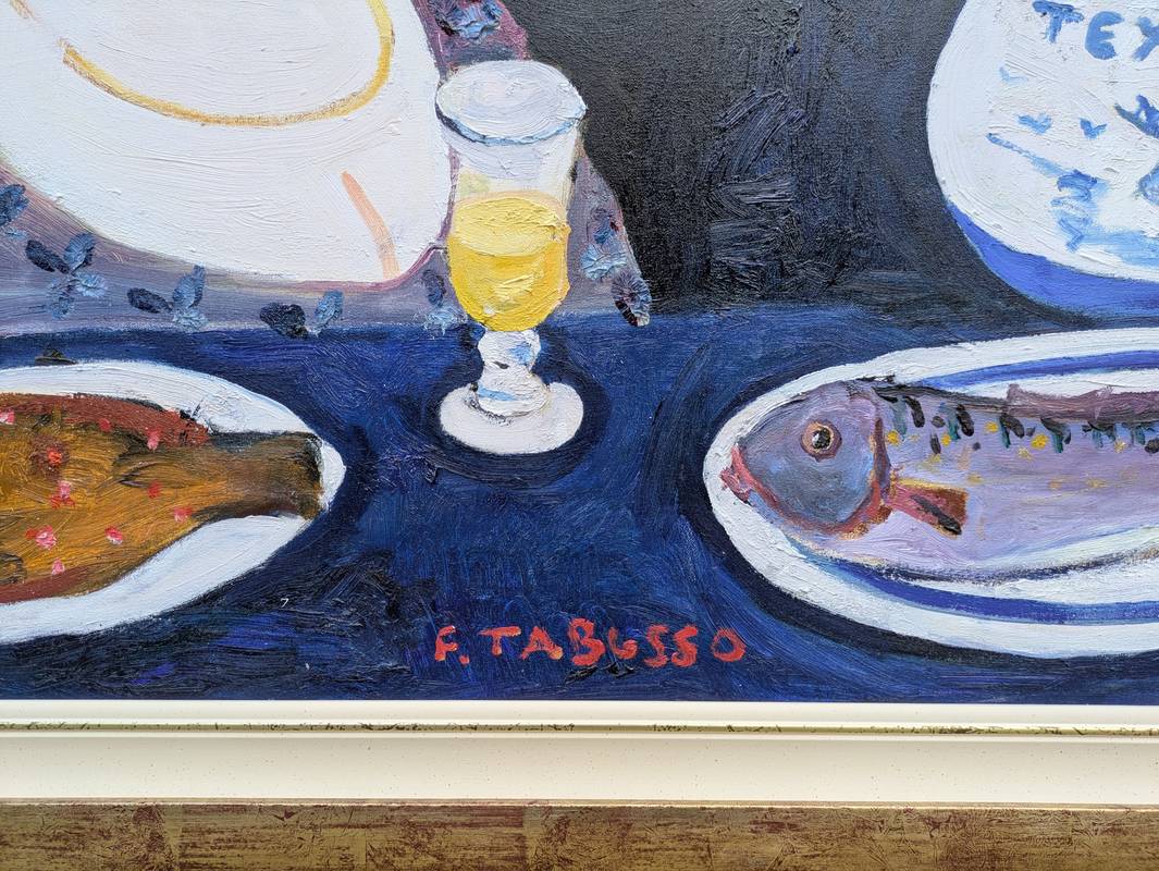 Dipinto a olio su tela firmato in basso al centro Francesco Tabusso (Sesto San Giovanni, 27 giugno 1930 – Torino, 29 gennaio 2012), pittore piemontese.