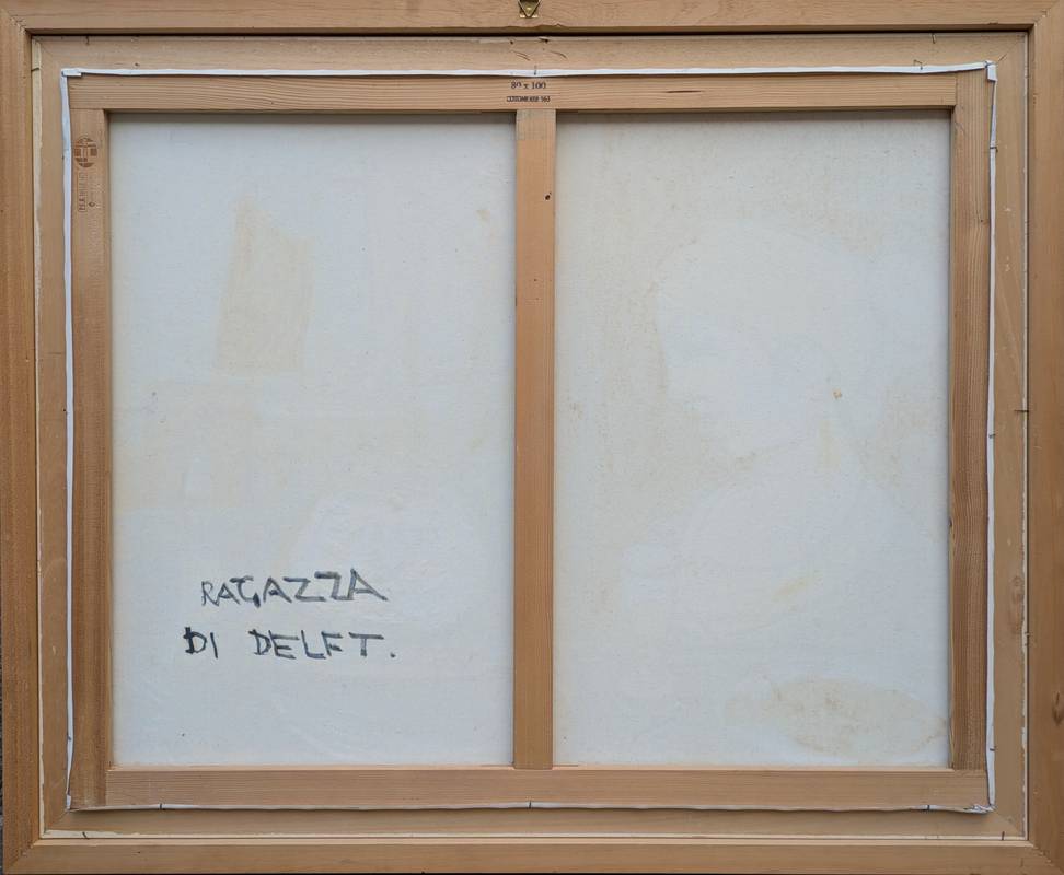 Al retro della tela è presente il titolo Ragazza di Delft.