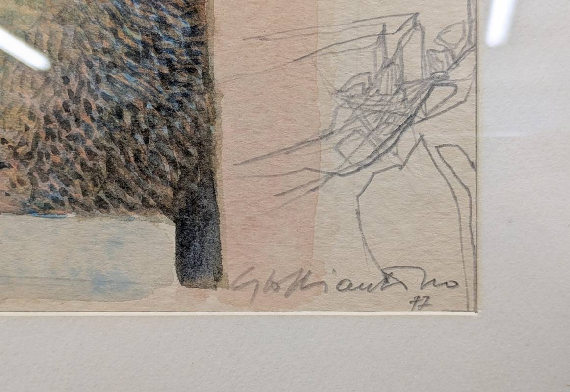 Dipinto ad acquerello su carta datato 1977 e firmato a grafite Giacomo Soffiantino (Torino, 1929-2013), pittore italiano.