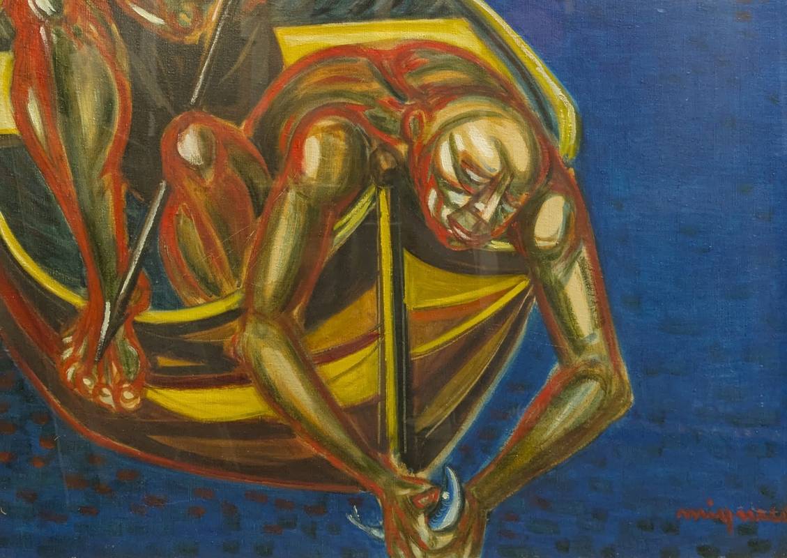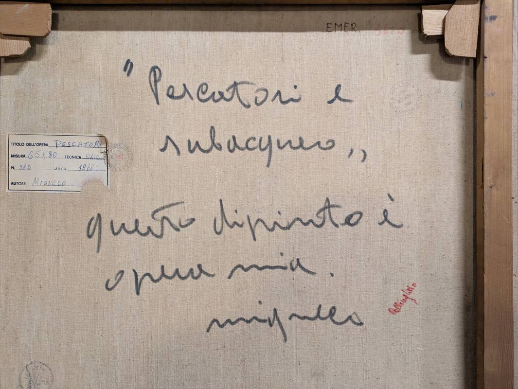 Giuseppe MIGNECO (1903-1997) – Pescatori e subacqueo, olio su tela