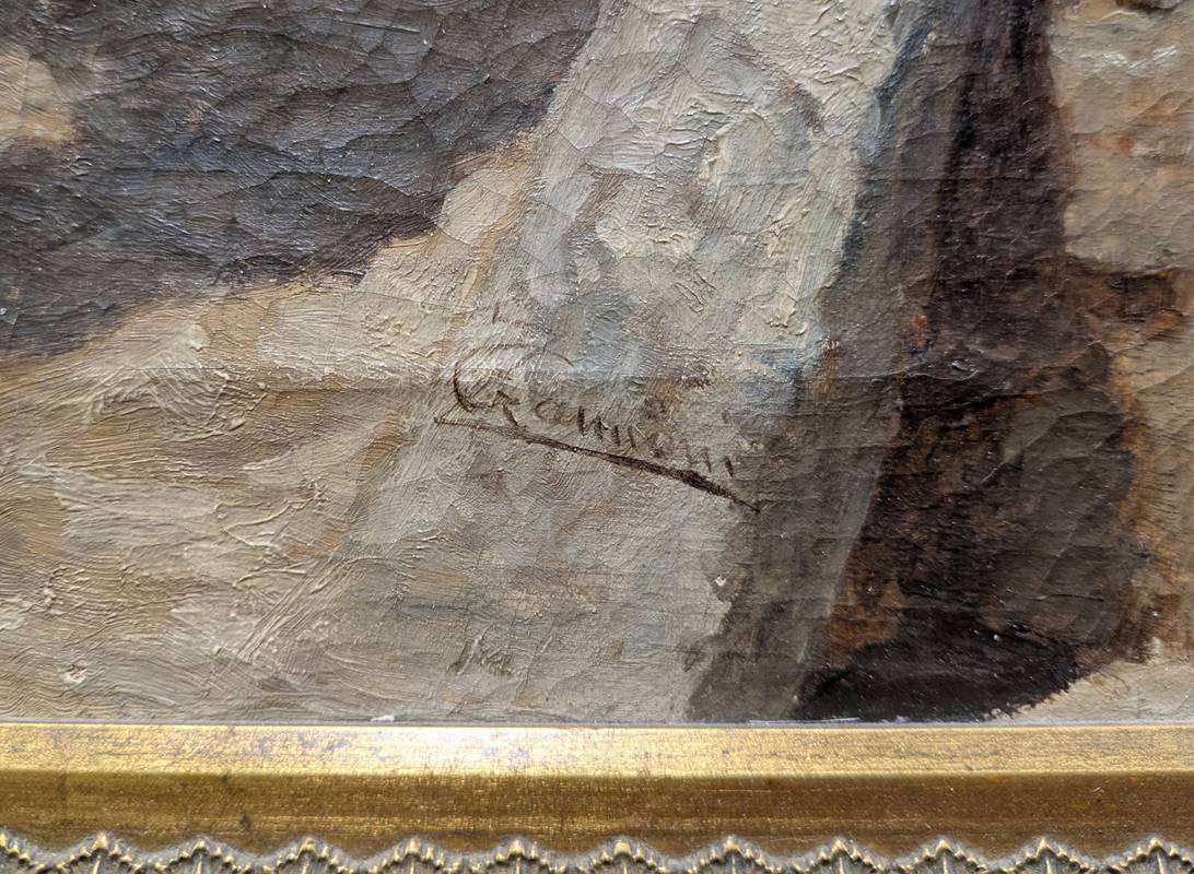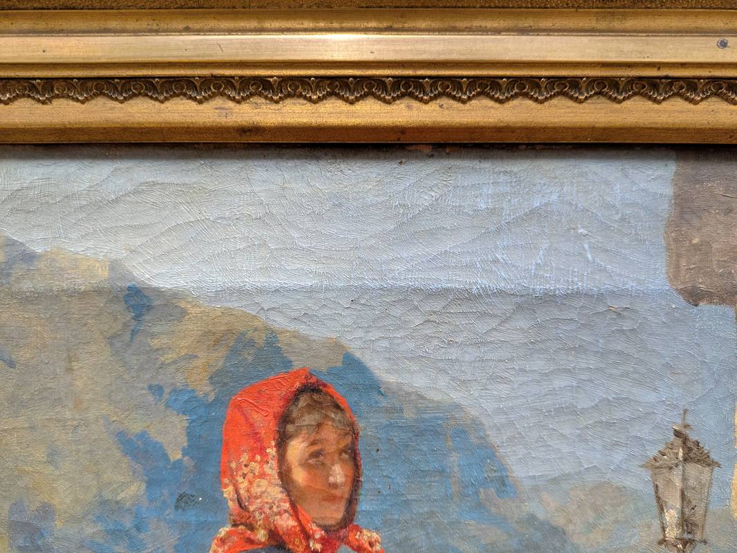 Dipinto realista a olio su tela firmato in basso a destra Giuseppe Zannoni (Verona, 1849 – Monteforte d’Alpone, 1903), pittore italiano dedito alla pittura di genere.
