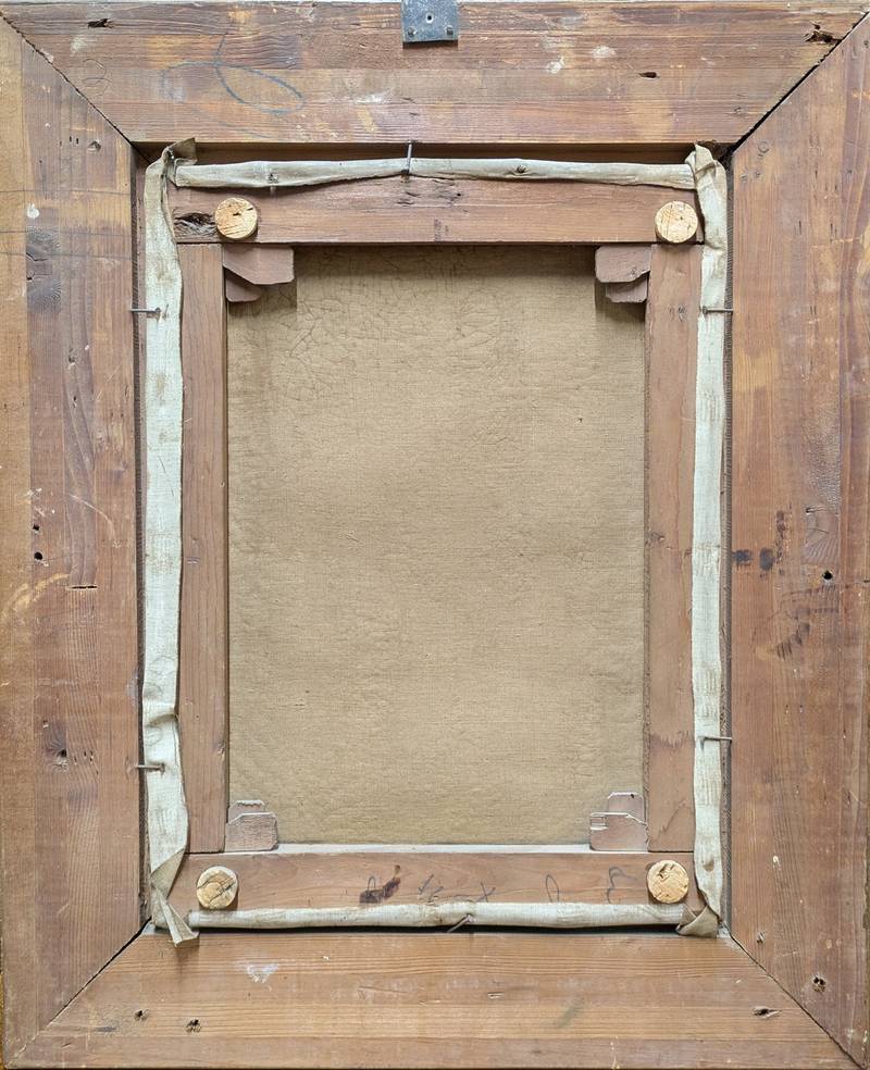 In ottime condizioni conservative come da fotografie, entro cornice in legno dorato. Si segnalano segni di craquelé e lievi mancanze pittoriche, mentre la cornice presenta mancanze sui bordi.