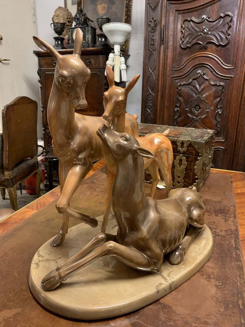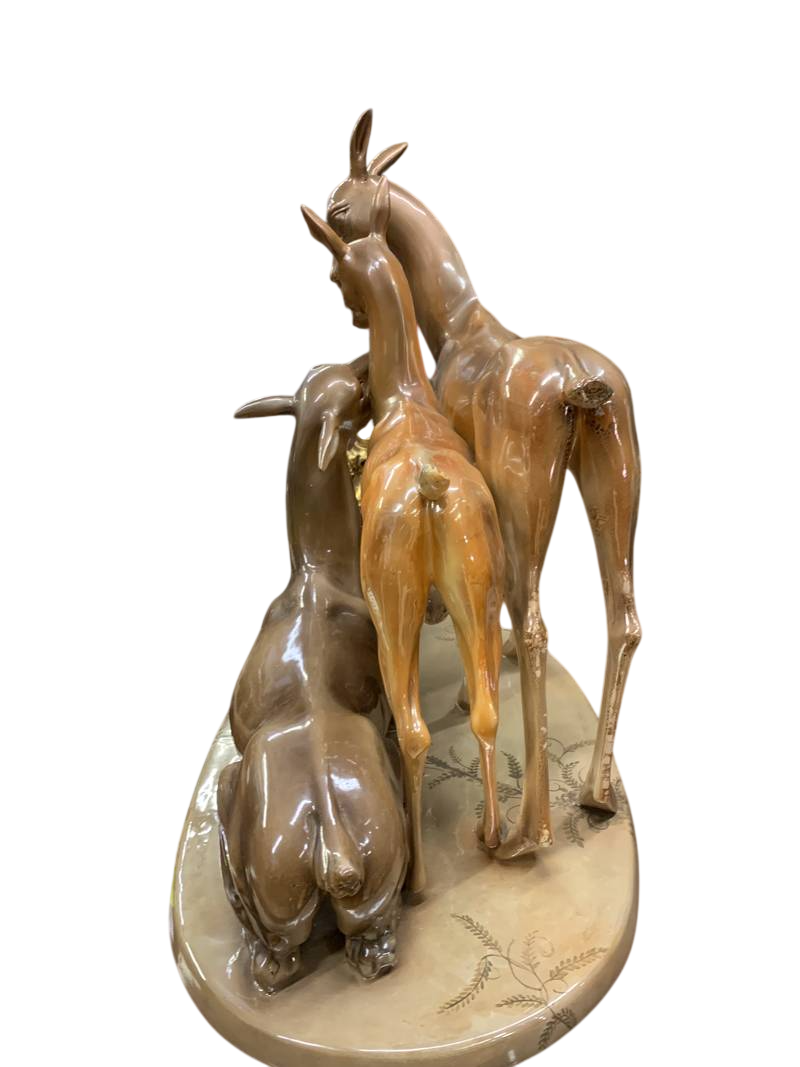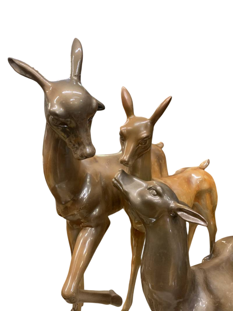 Gruppo in ceramica maiolicata decorata raffigurante 3 cerbiatti