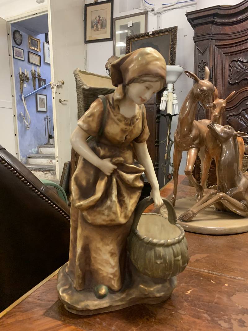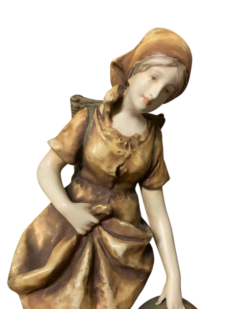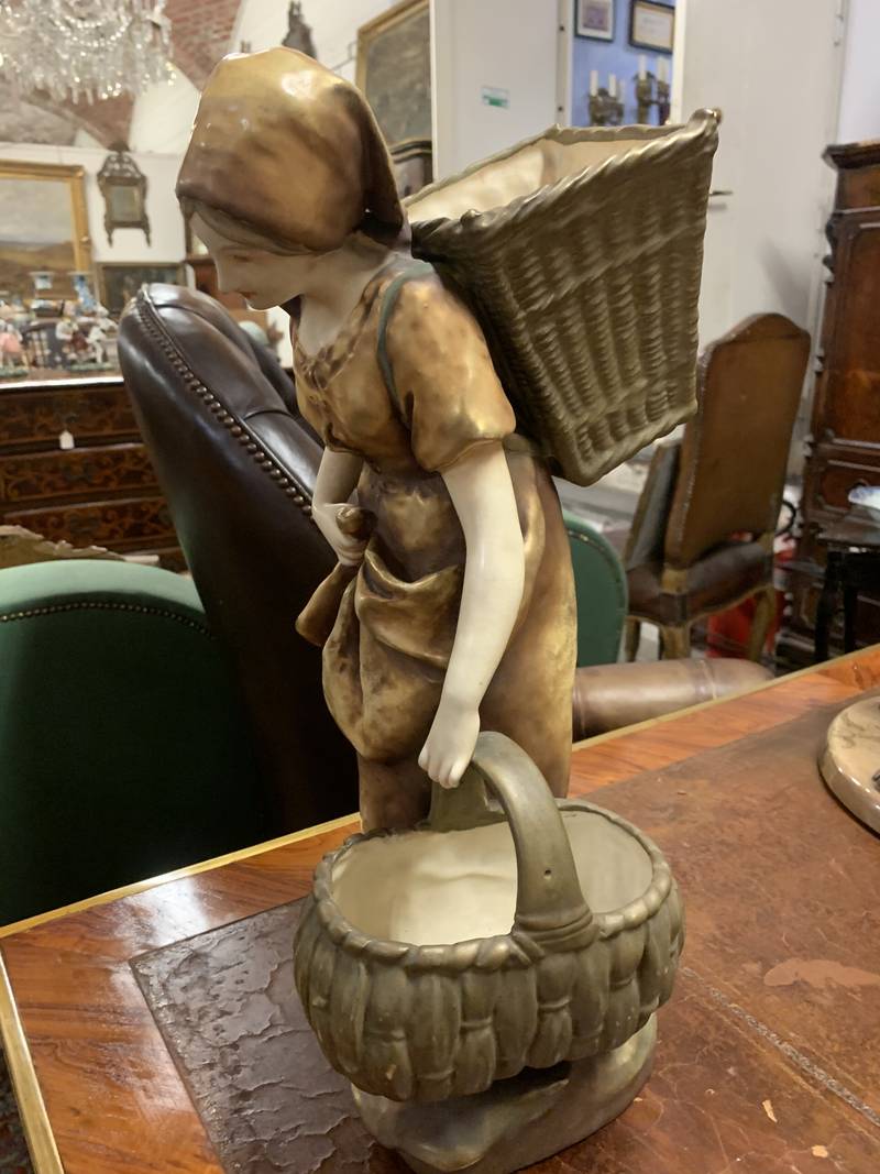 Grande ceramica ragazza con ceste – Austria, 1920 ca.Manifattura Amphora Turn Teplitz