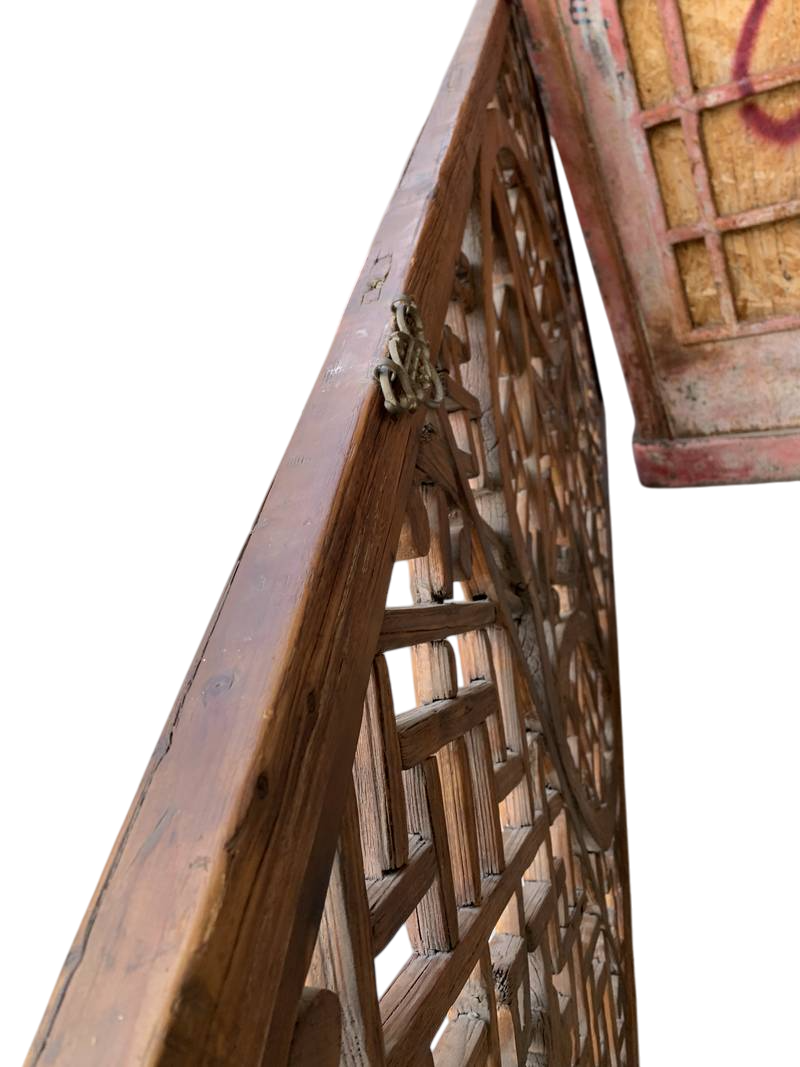 Grande pannello orientale da muro in legno intagliato a traforo orientale