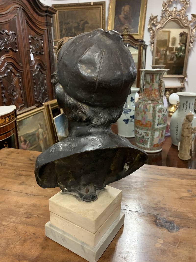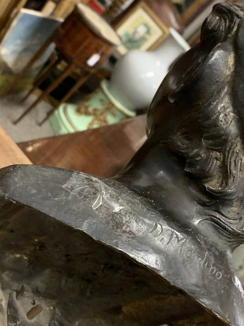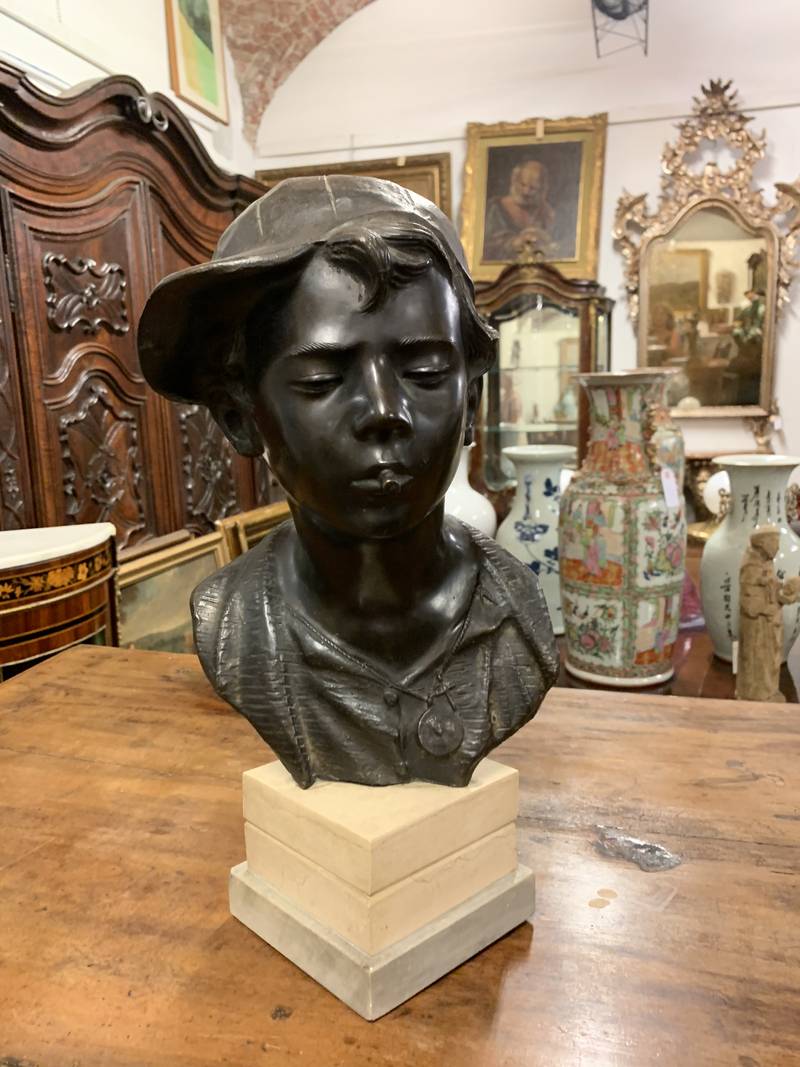 Grande scultura in bronzo scugnizzo firmato Giovanni De Martino su base in marmo