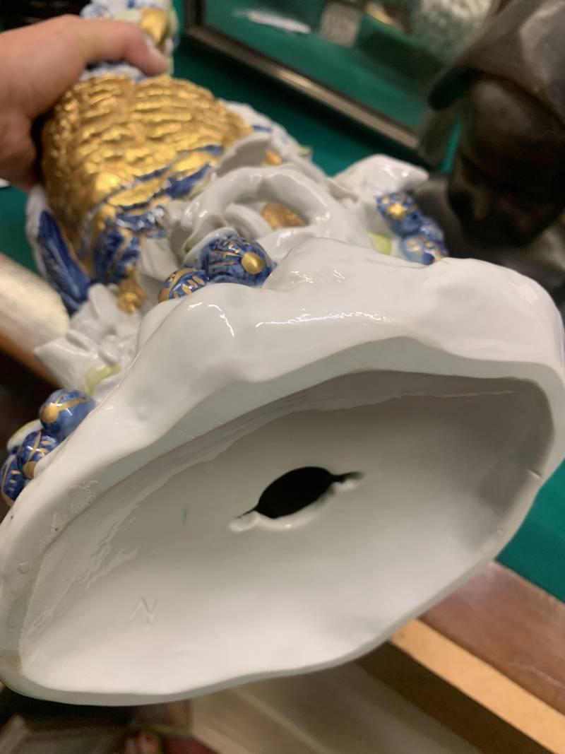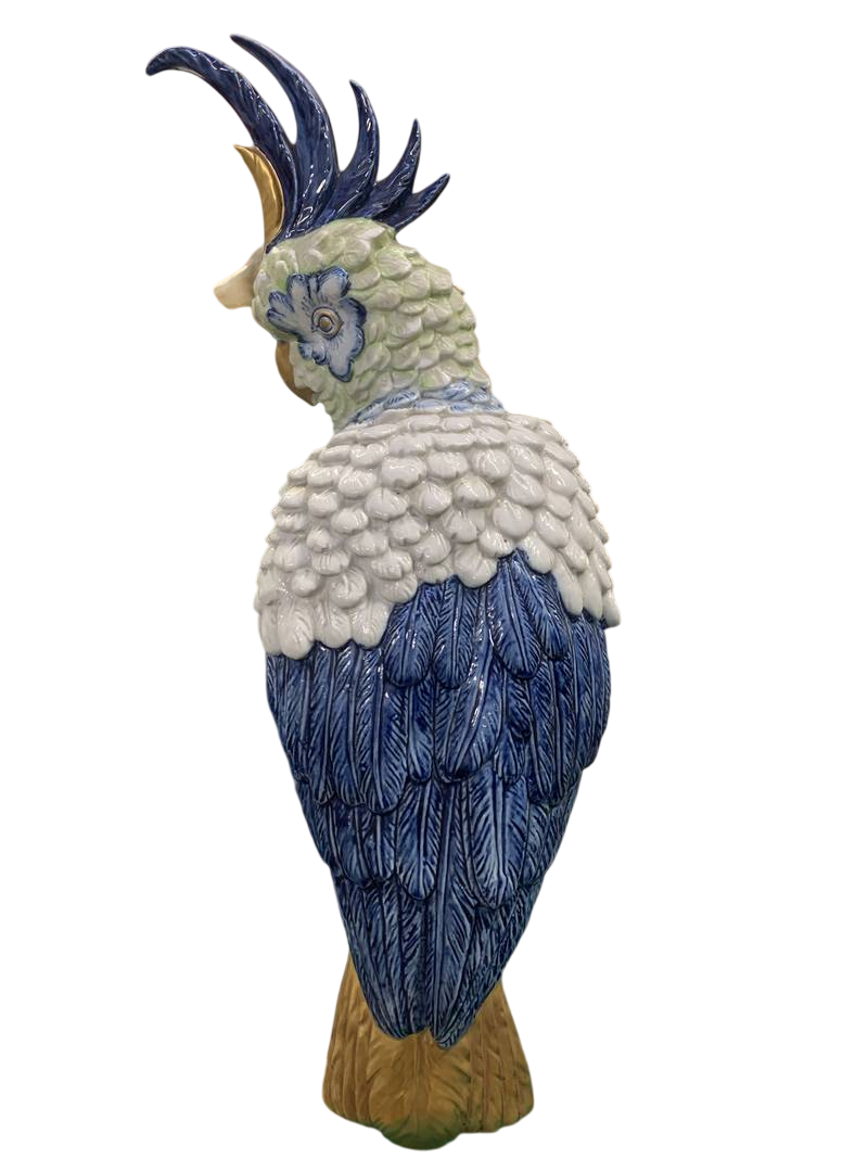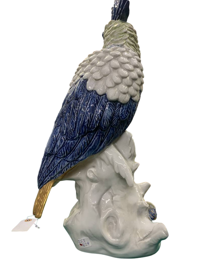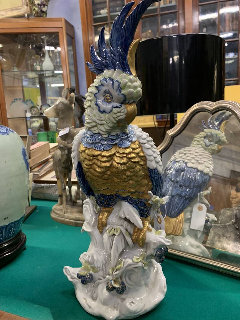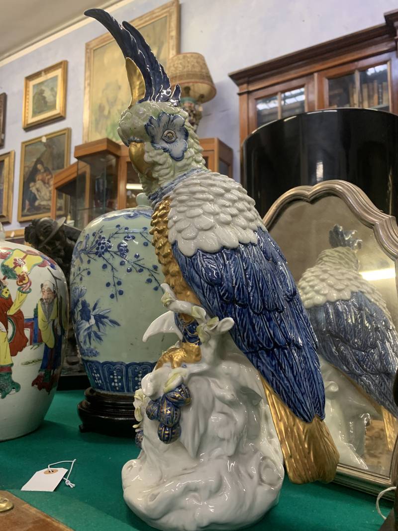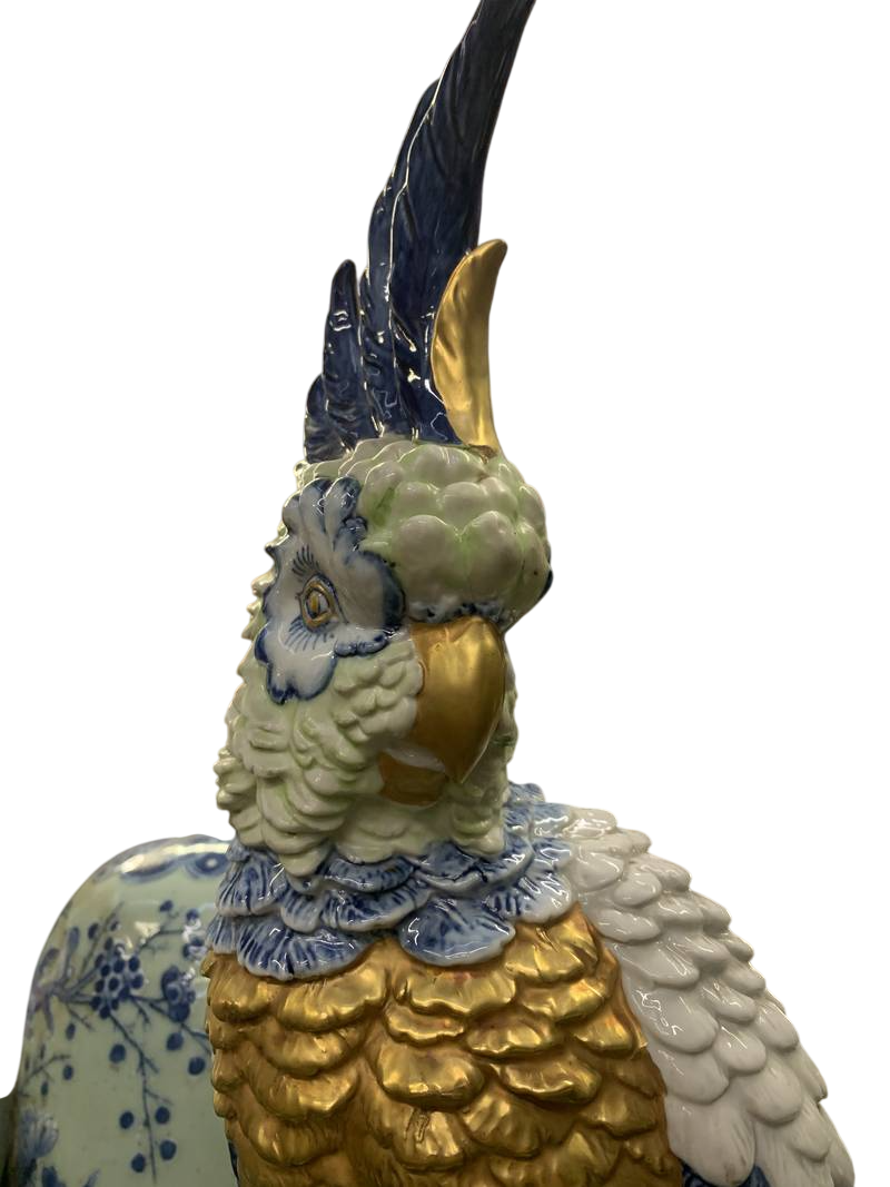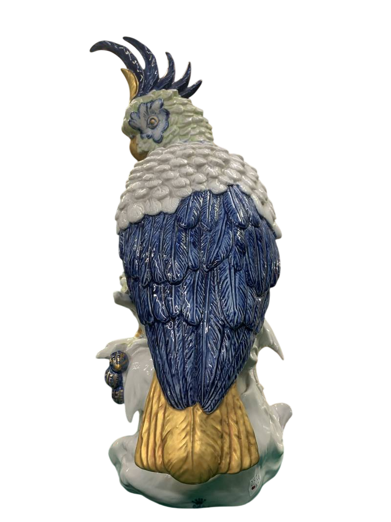 Grande statuina pappagallo cacatua porcellana tedesca lumeggiato in oro nyy