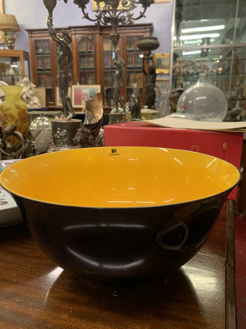 Grande vaso centrotavola arancio e nero Murano Carlo Moretti