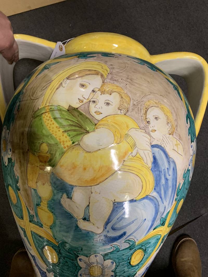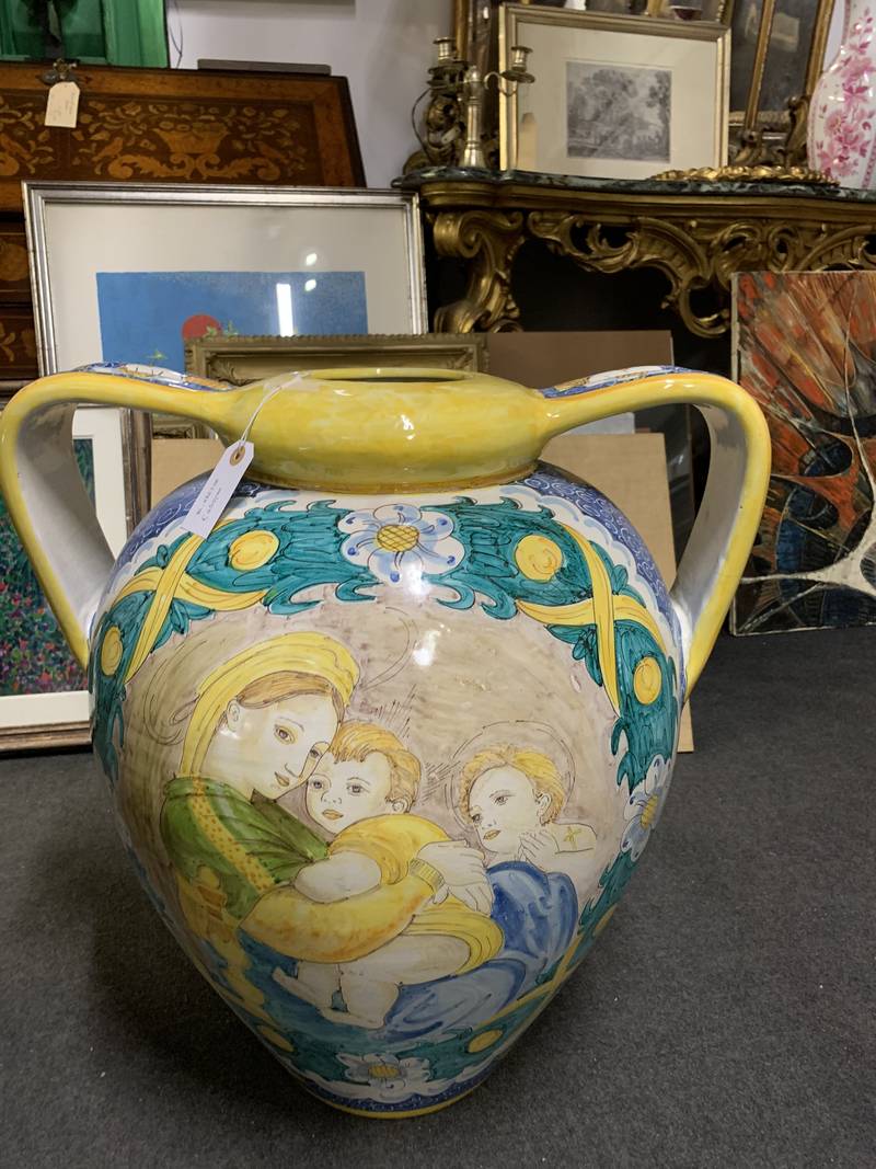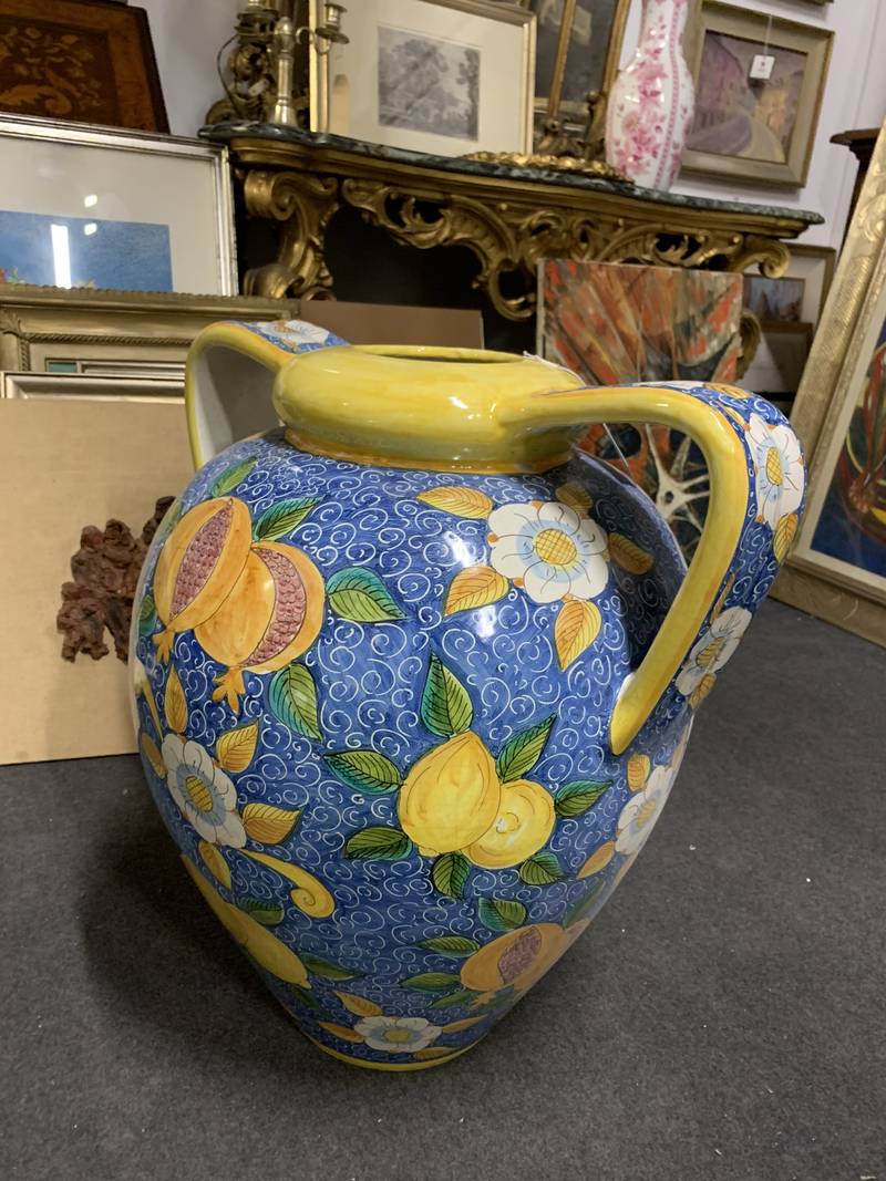 Grande vaso con anse ceramica d’arte italiana Caltagirone Sicilia