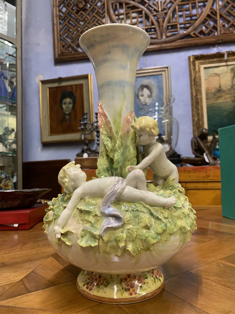 Grande vaso porcellana del novecento Art Nouveau bimbi che giocano