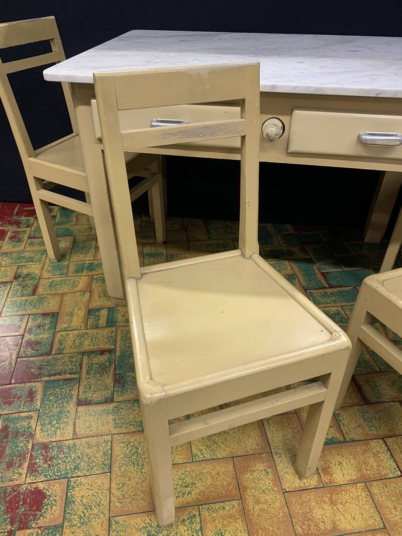 Gruppo di 4 originali sedie da cucina anni 60 laccate