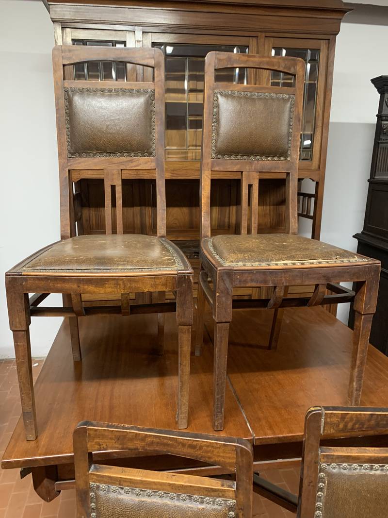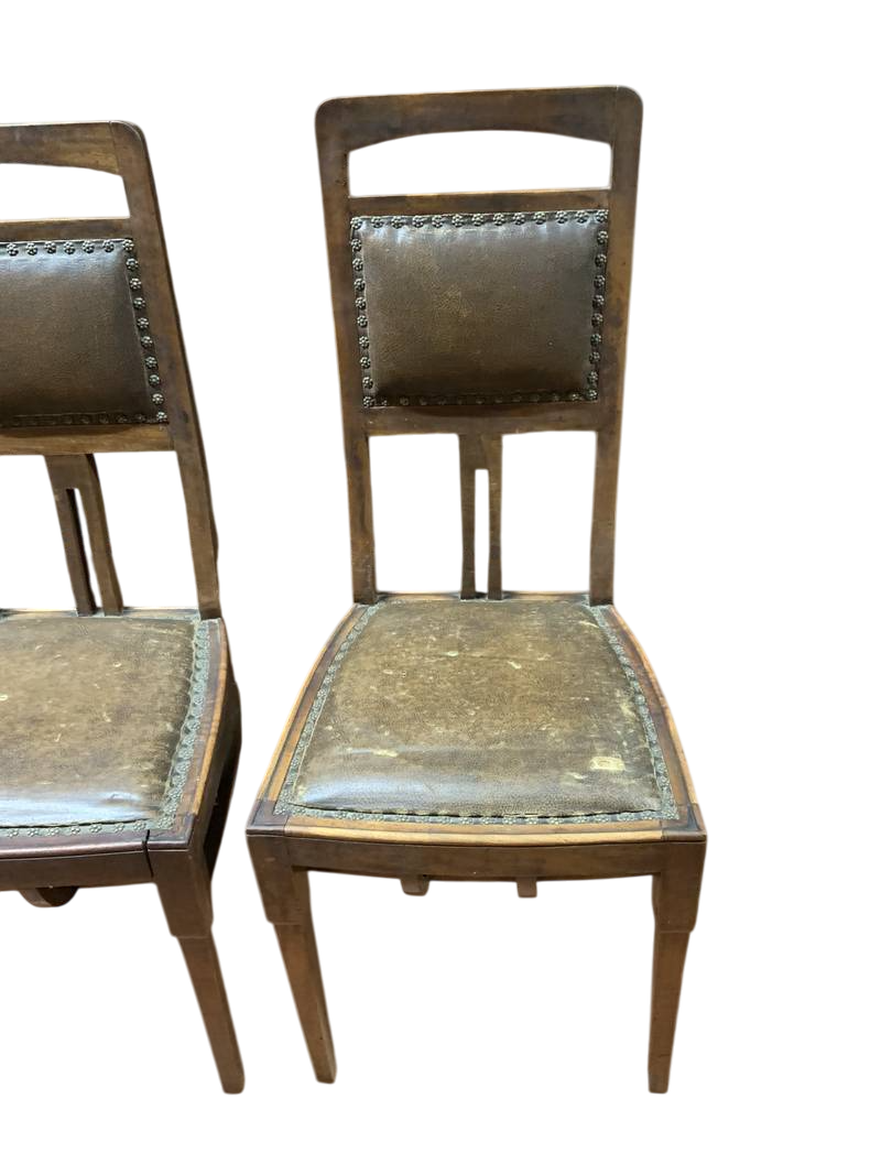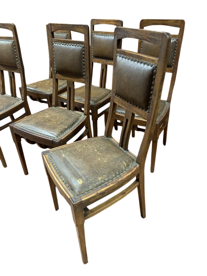 Gruppo di 6 antiche sedie Liberty in cuoio inizi del 900