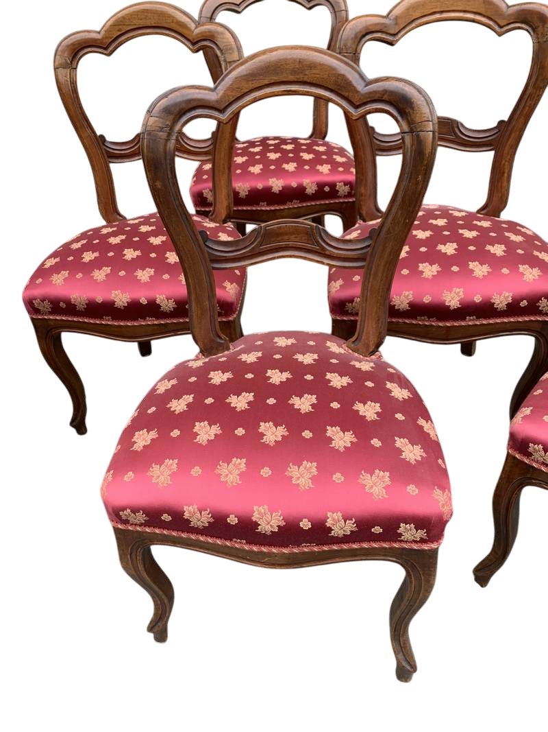 Gruppo di 6 sedie epoca Luigi Fillippo 1870 circa in nocetessuto rosso