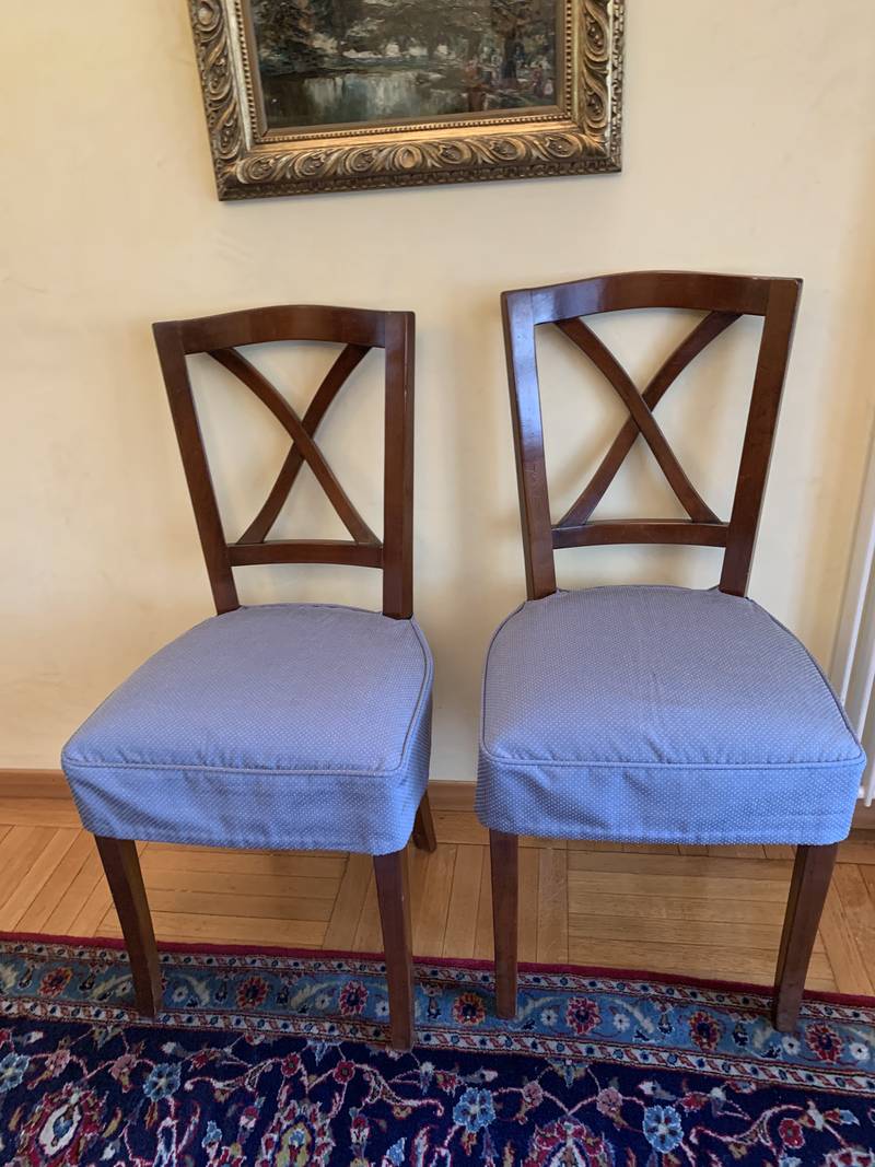 Gruppo di 6 sedie inglesi imbottite tessuto azzurro