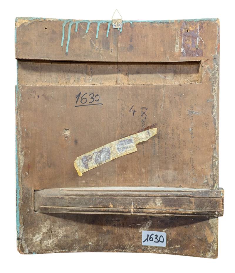 In buone condizioni conservative come da fotografie, si segnalano difetti (craquele) e mancanze pittoriche.