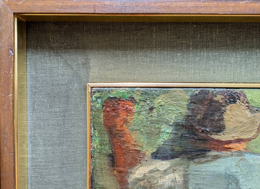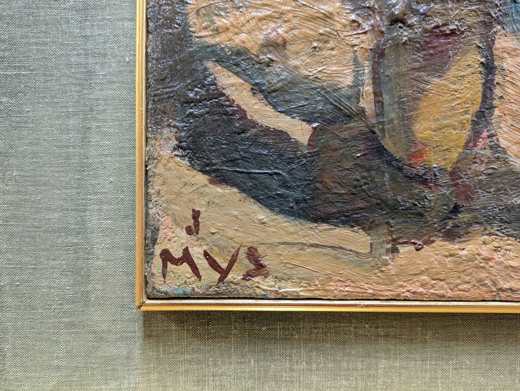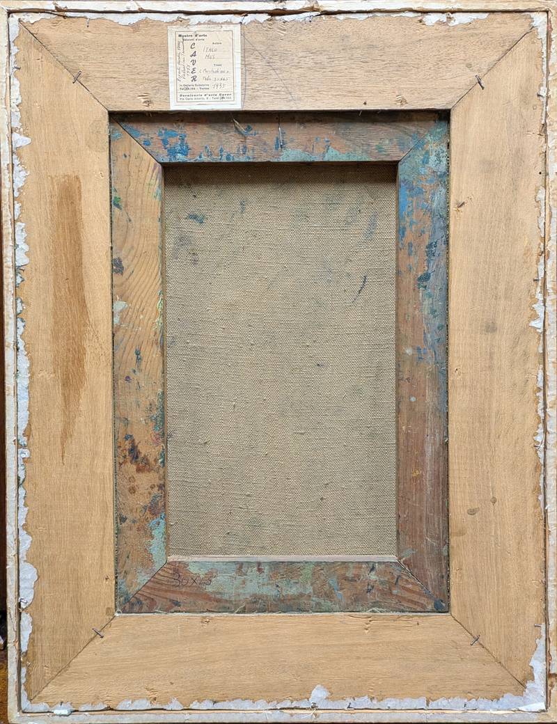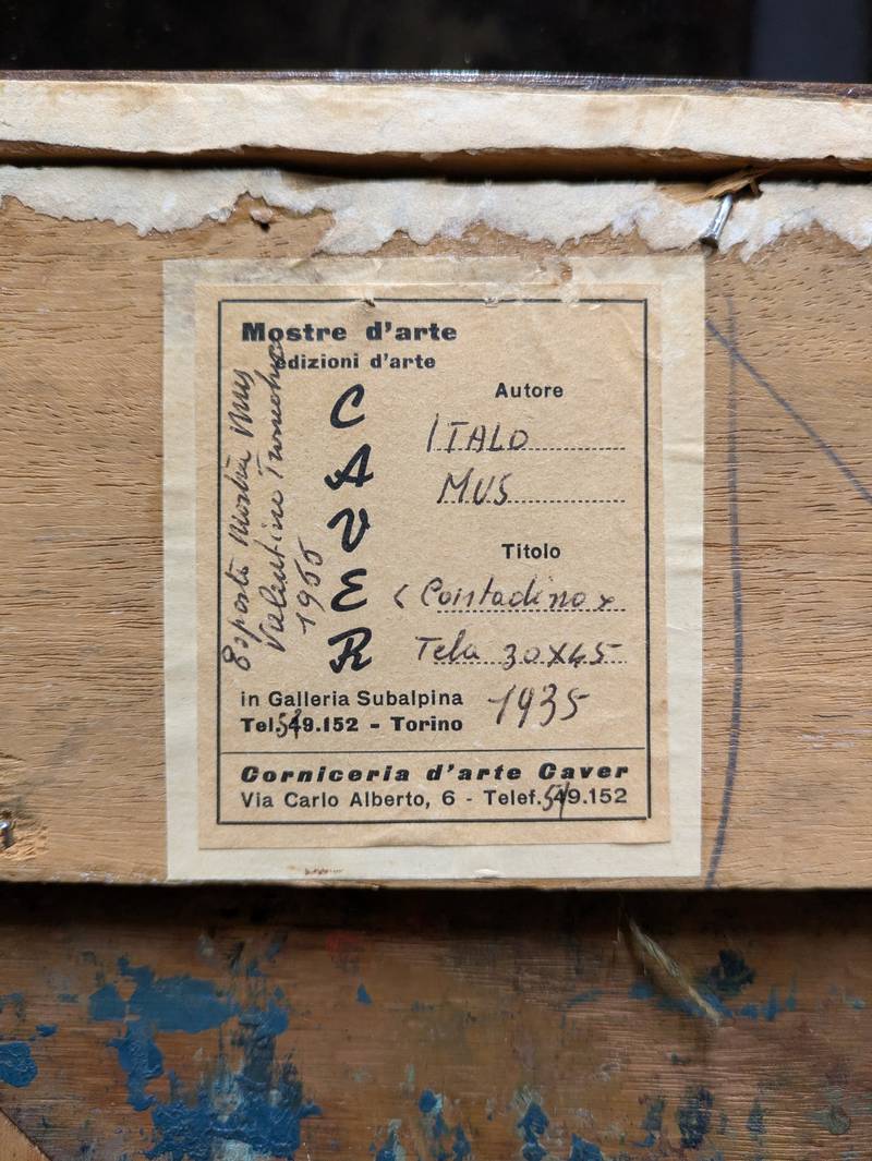 Dipinto a olio su tela firmato in basso a sinistra Joseph-Italo Mus (Châtillon, 4 aprile 1892 – Saint-Vincent, 15 maggio 1967), pittore italiano che si dedica alla rappresentazione della vita rurale.