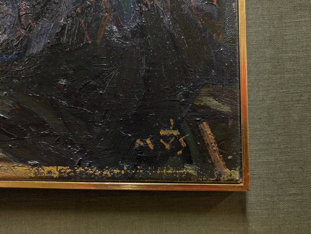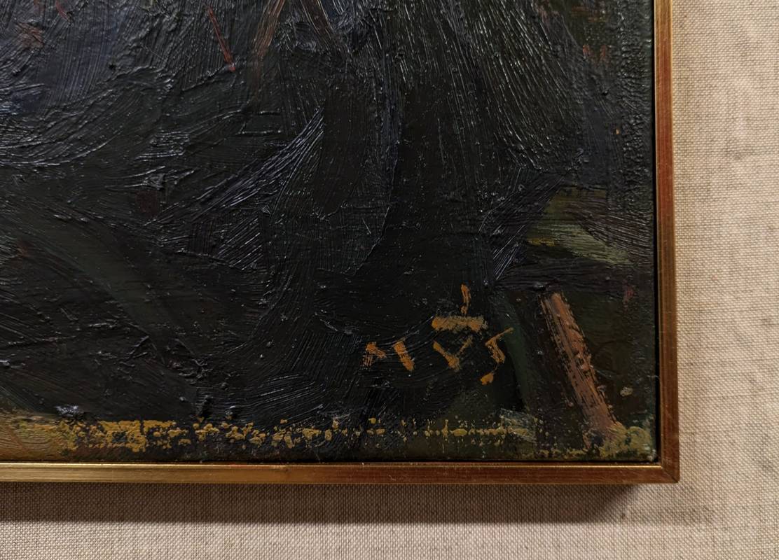 Dipinto a olio su tela firmato in basso a destra Joseph-Italo Mus (Châtillon, 4 aprile 1892 – Saint-Vincent, 15 maggio 1967), pittore italiano che si dedica alla rappresentazione della vita rurale.