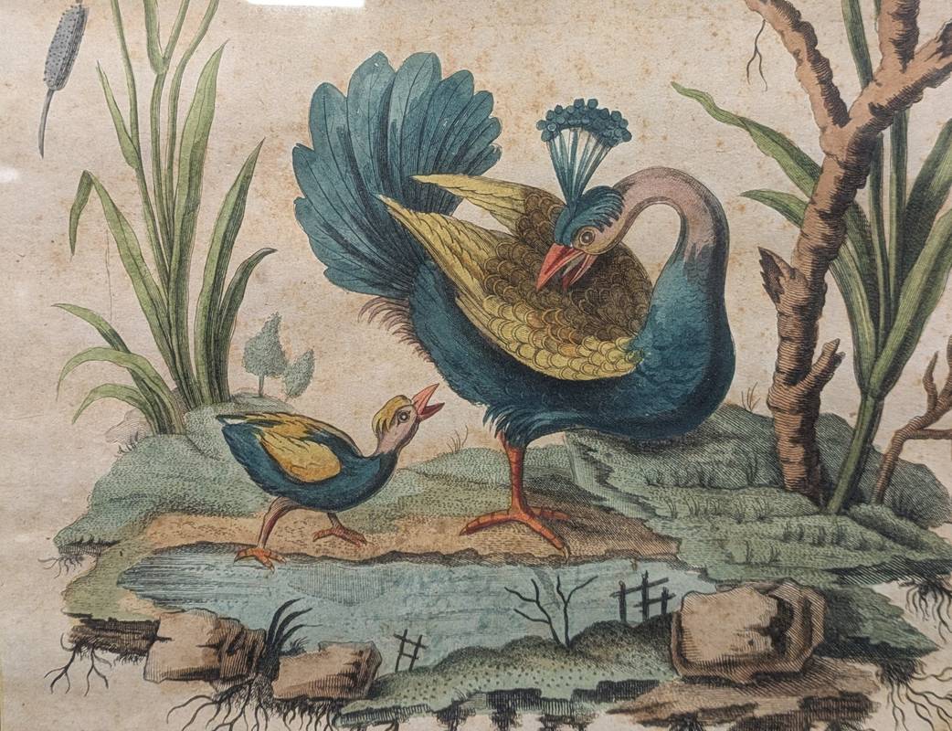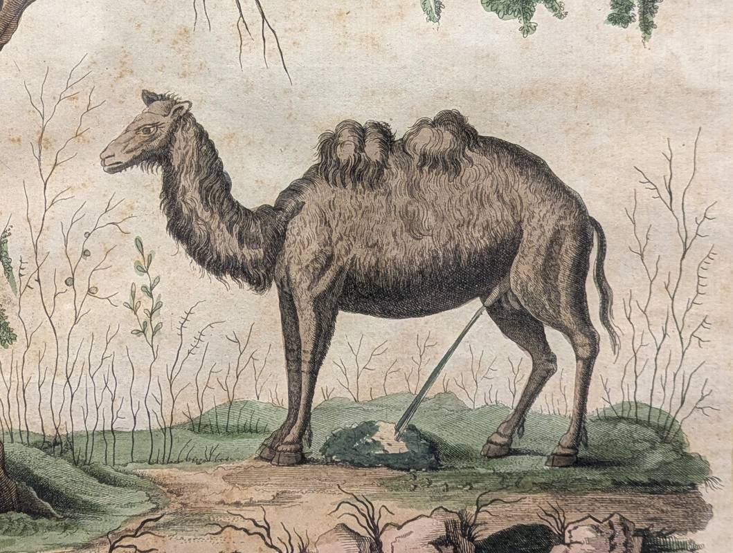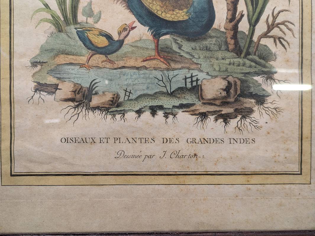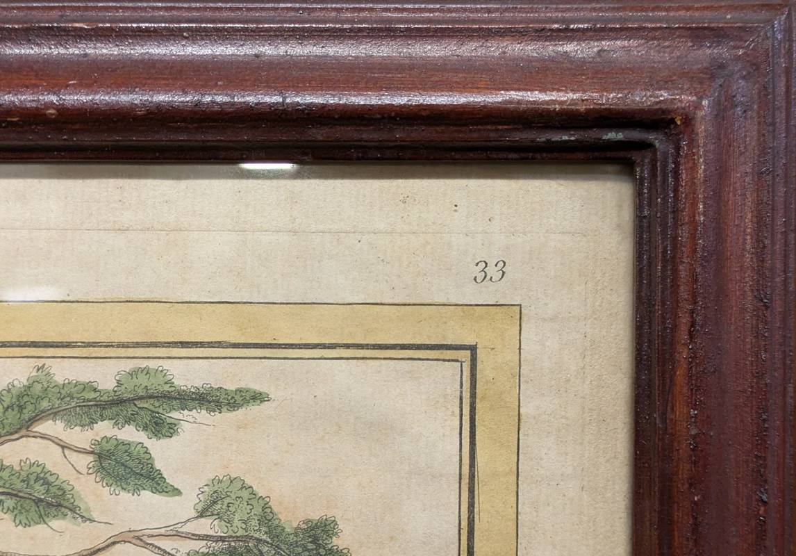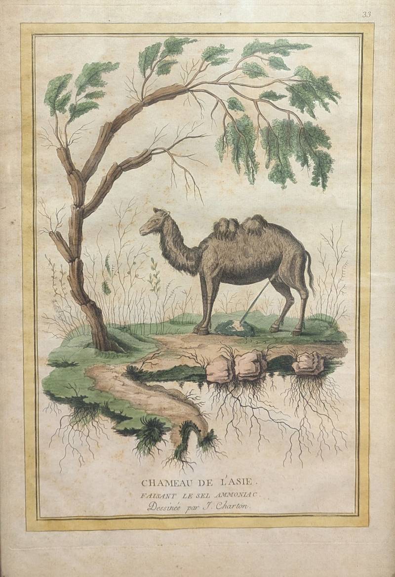 Le stampe raffigurano piante ed animali esotici, come da iscrizioni in basso al centro, brevemente ritratti nei loro habitat. Opere numerate nell’angolo in alto a destra (n° 33, 49, 31).