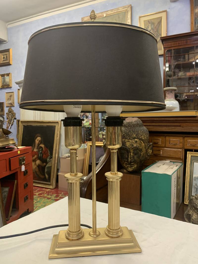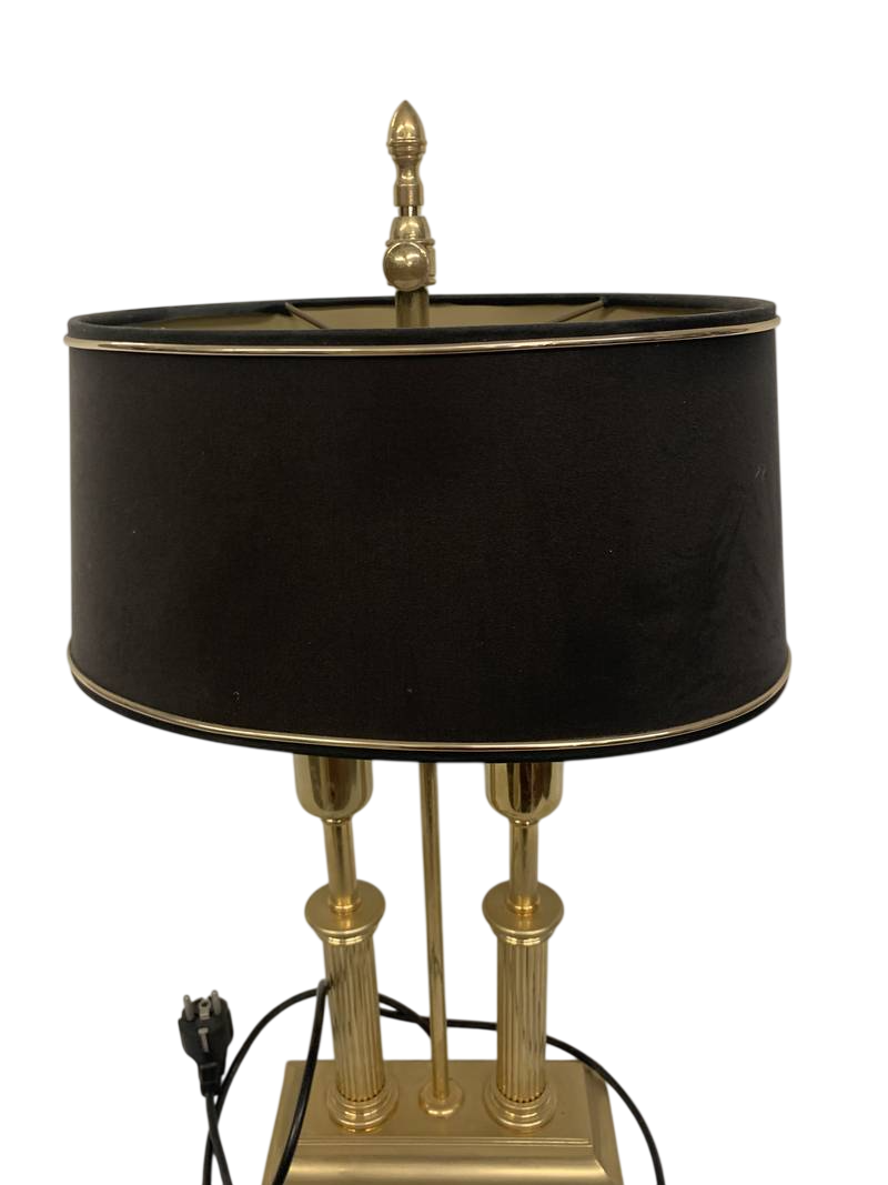 prestigiosa manifattura neoclassica da di recente produzione Lampada da tavolo in stile bouillotte dorata con paralume nero