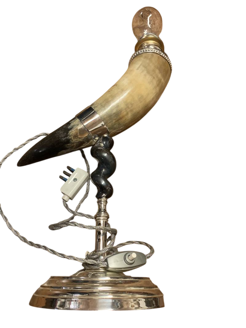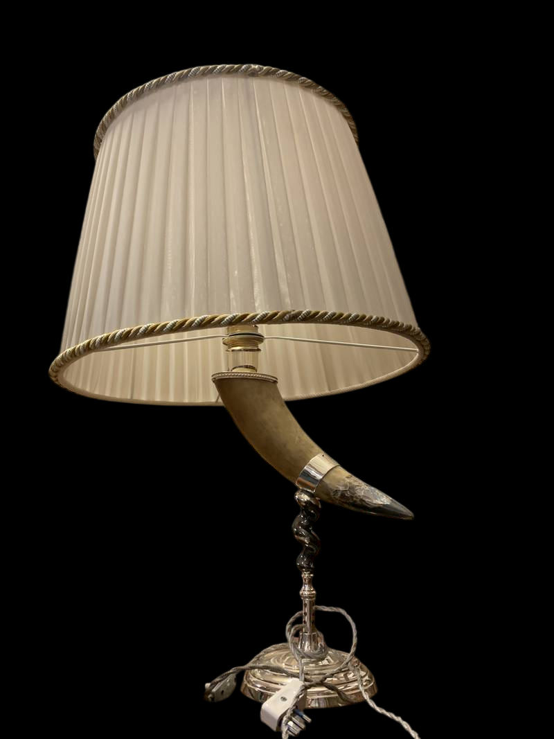 Lampada da tavolo corno base argentata lampada a cornucopia