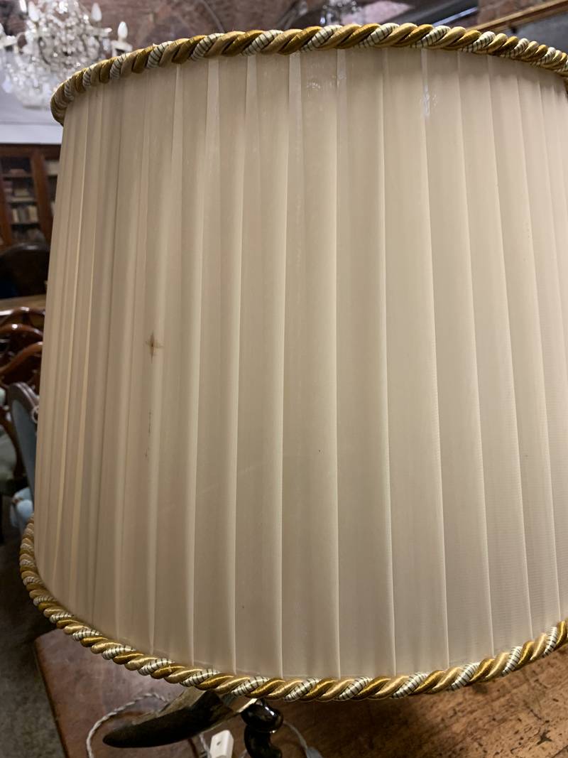 Lampada da tavolo corno cornucopia base argentata paralume in seta plissettata