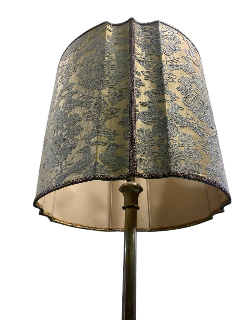 Lampada da terra piantana ottone paralume con decori rinascimentali