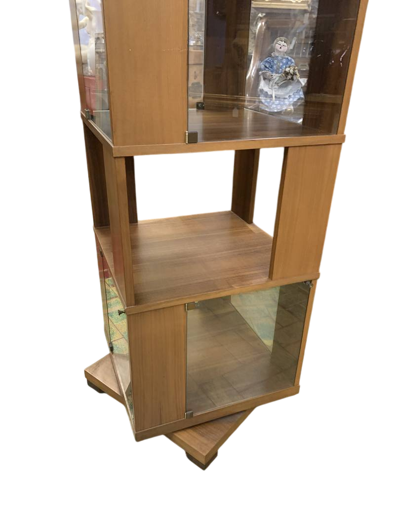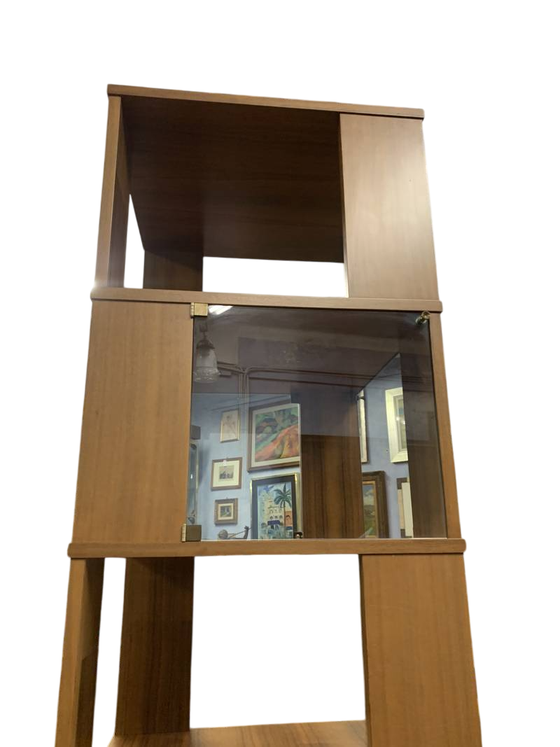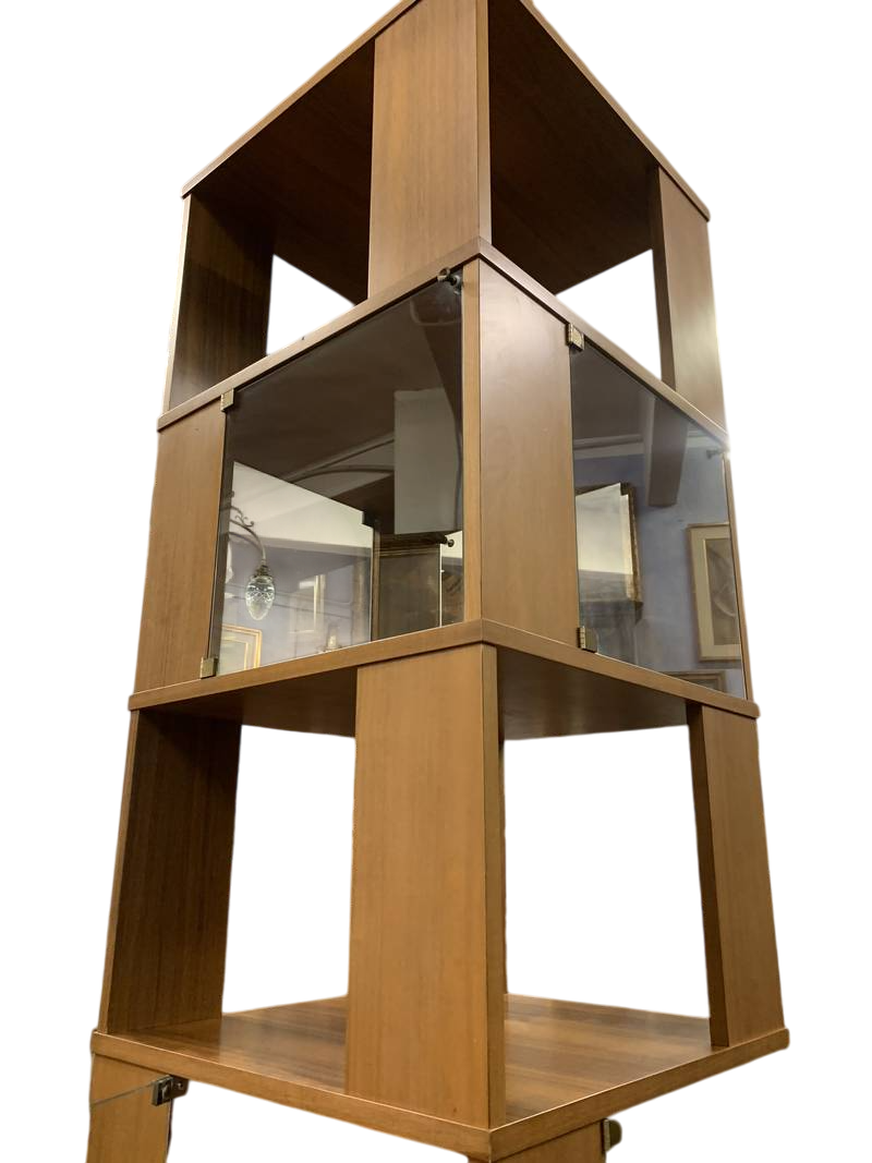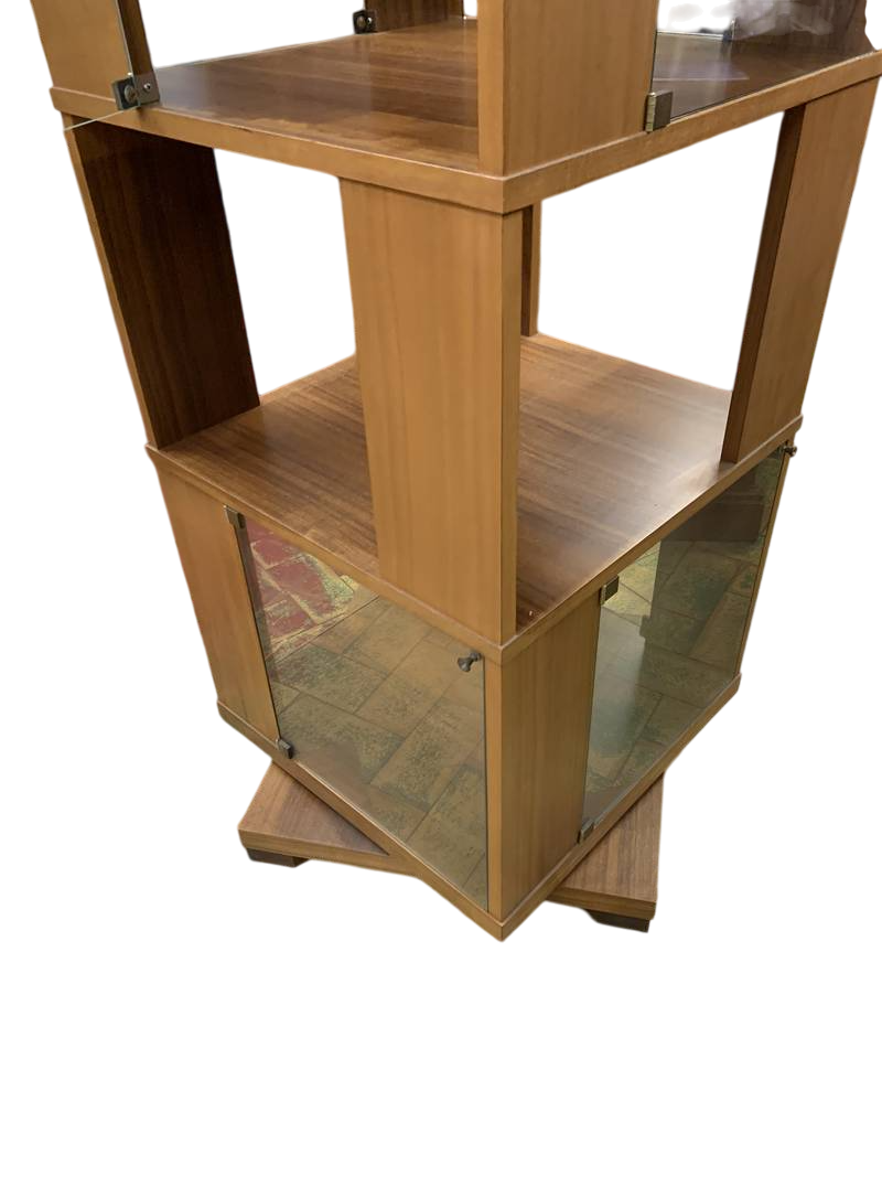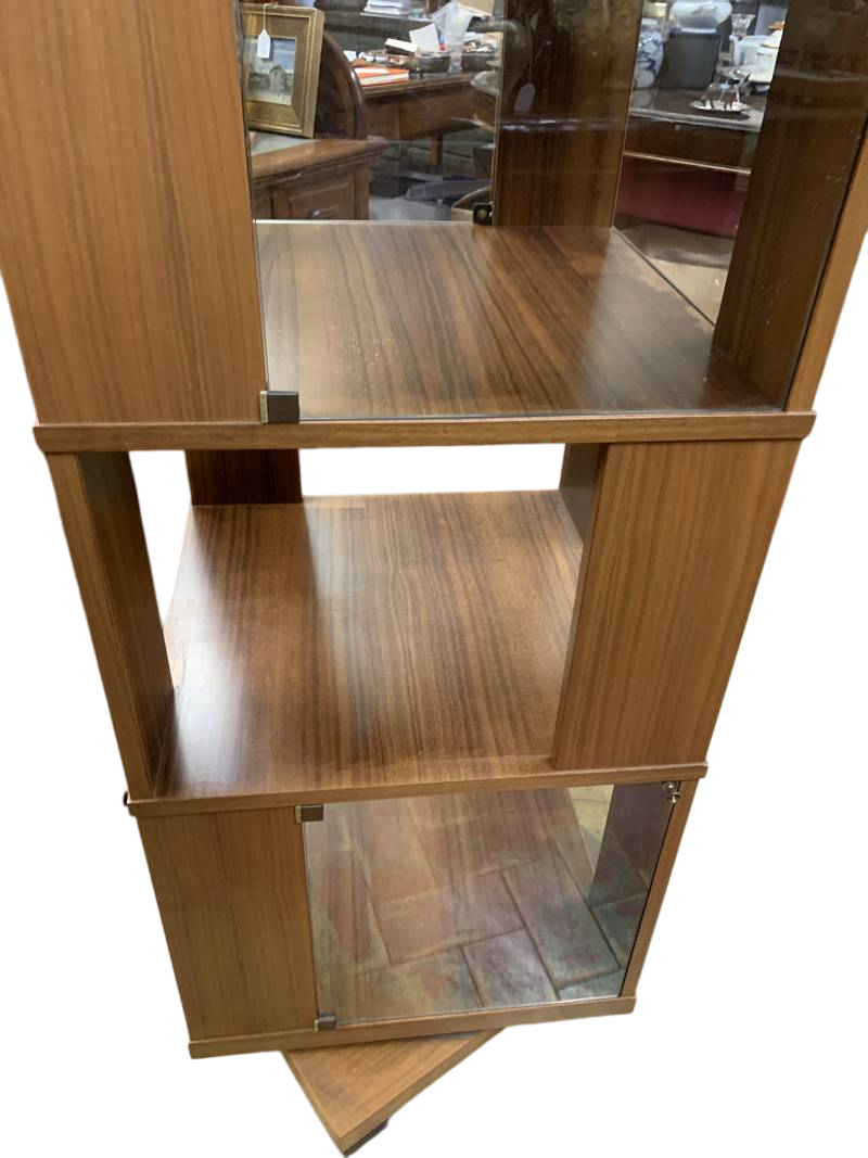 Libreria girevole in legno di noce con ante in vetro anni 60 Design italiano