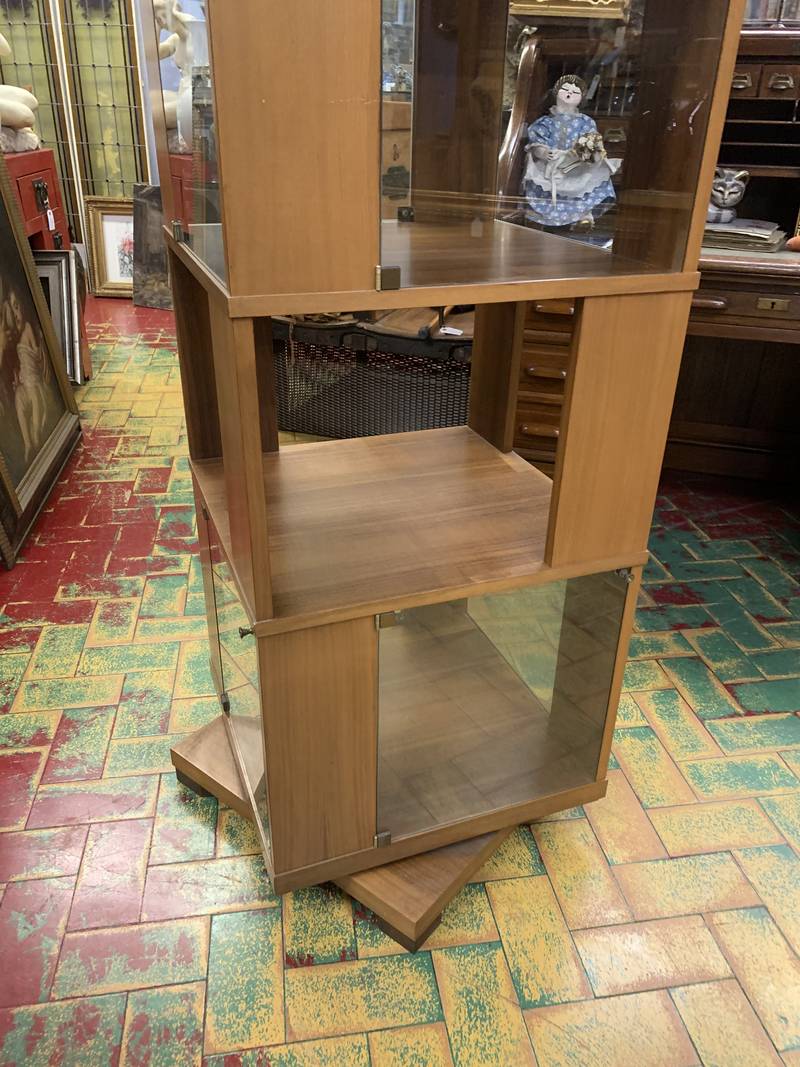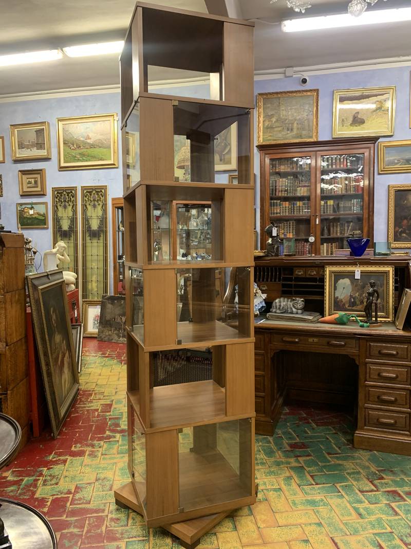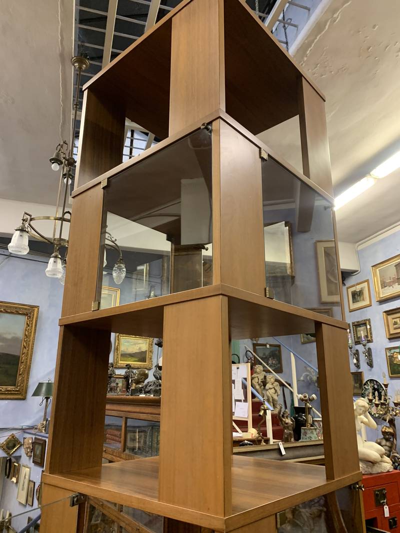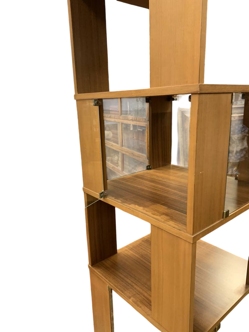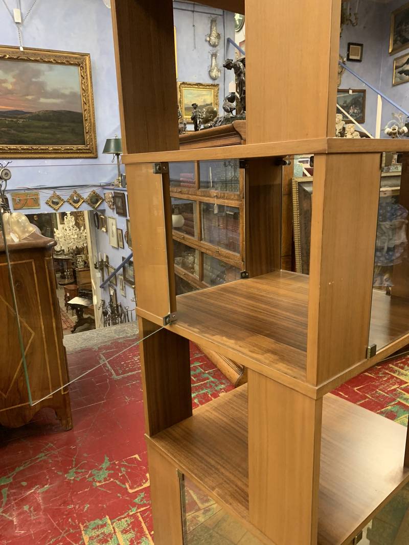 Libreria girevole in legno di noce con ante in vetro anni 60 Design italiano