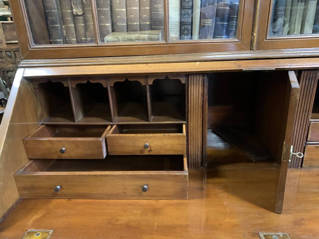 Libreria inglese bureau bookcase in mogano con ribalta mogano Londra 1860 circa