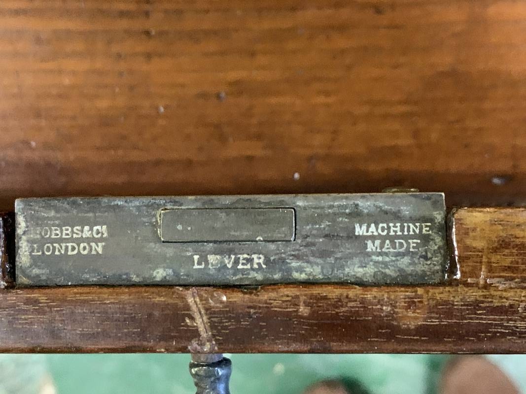 “London Lever” indica il tipo di serratura utilizzato. Le serrature a leva (lever locks), come quelle prodotte da rinomati fabbricanti londinesi dell’epoca (ad esempio Bramah o Chubb), erano considerate uno standard di alta sicurezza per i mobili di pregio