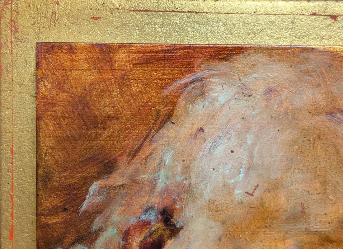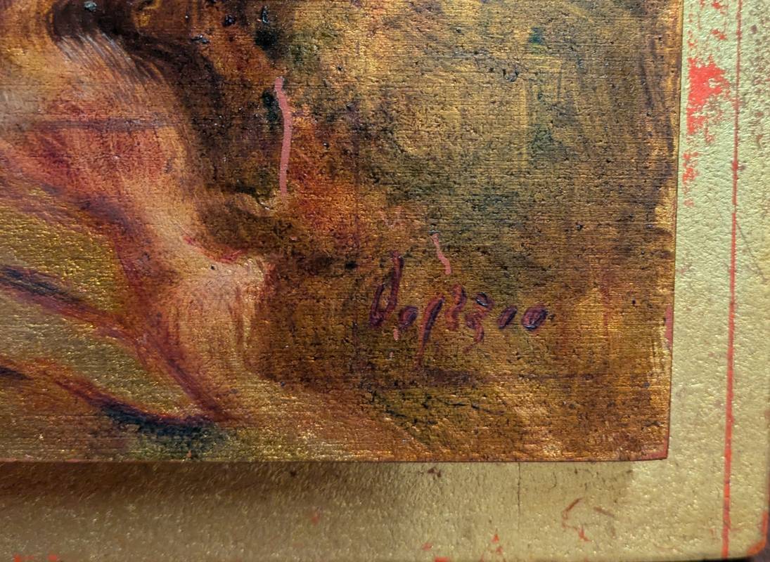 In ottime condizioni conservative come da fotografie, i dipinti sono stati applicati su pannelli più grandi che fanno da sfondo al perimetro del dipinto.