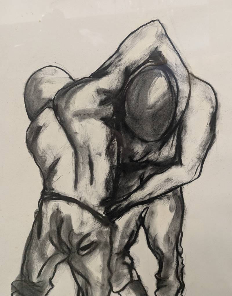 M. PONTIN – Lottatori, carboncino su carta – 1973