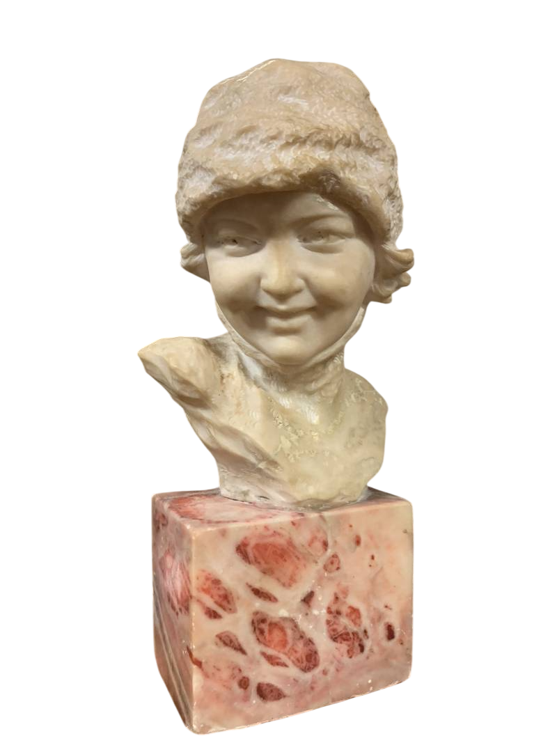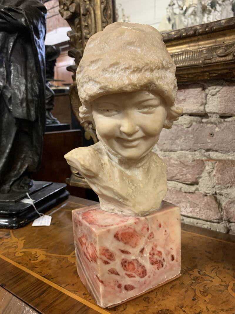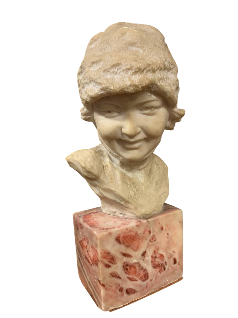 Mezzo busto scultura volto di bimba anni 30 alabastro
