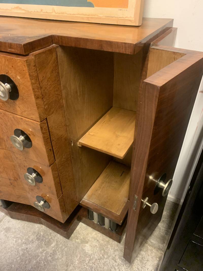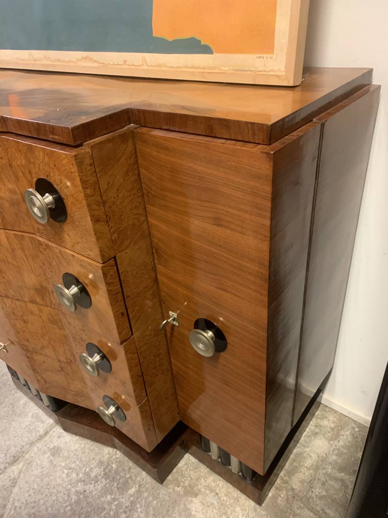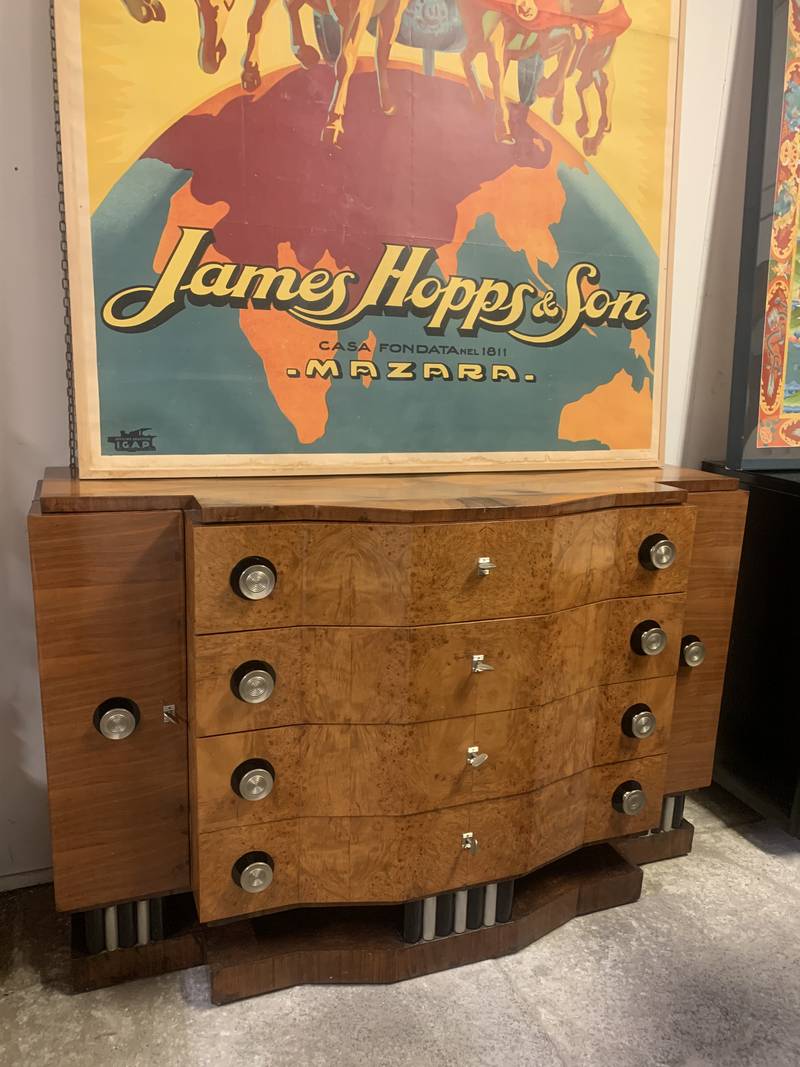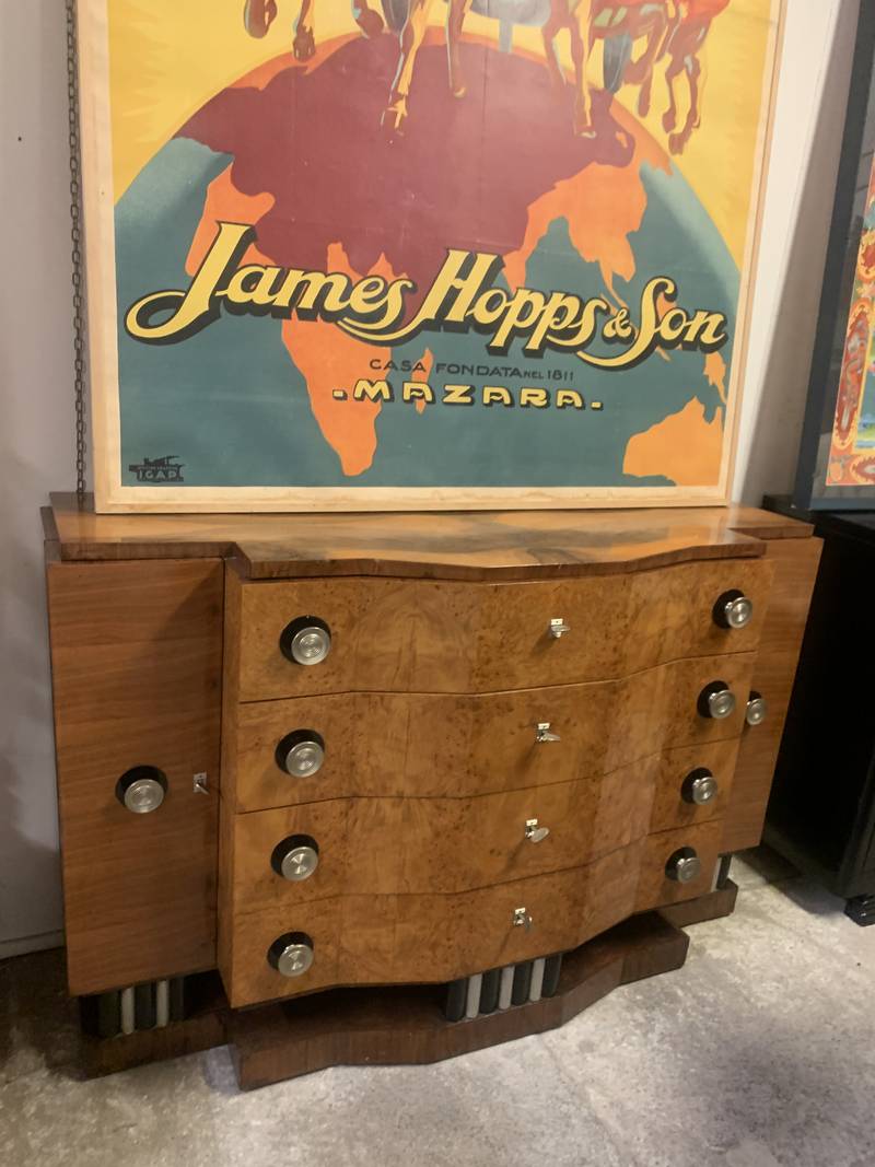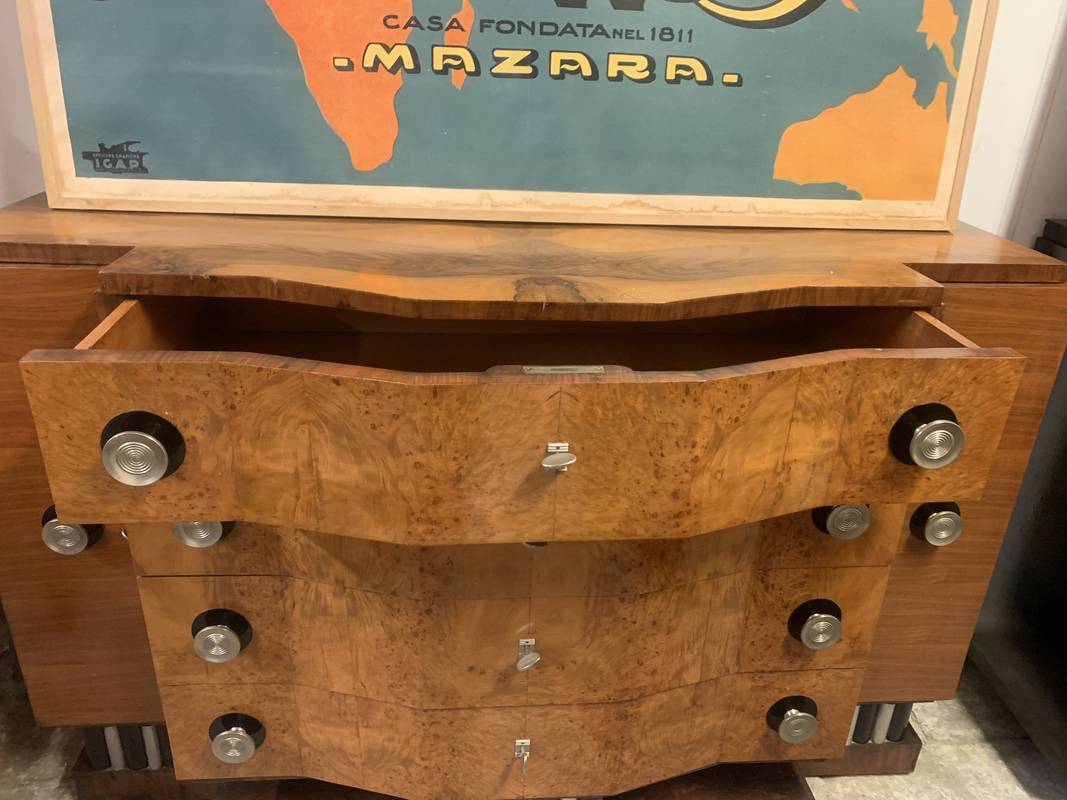 Mobile cassettone cassettiera Art Deco’ in radica vetro nero anni 30