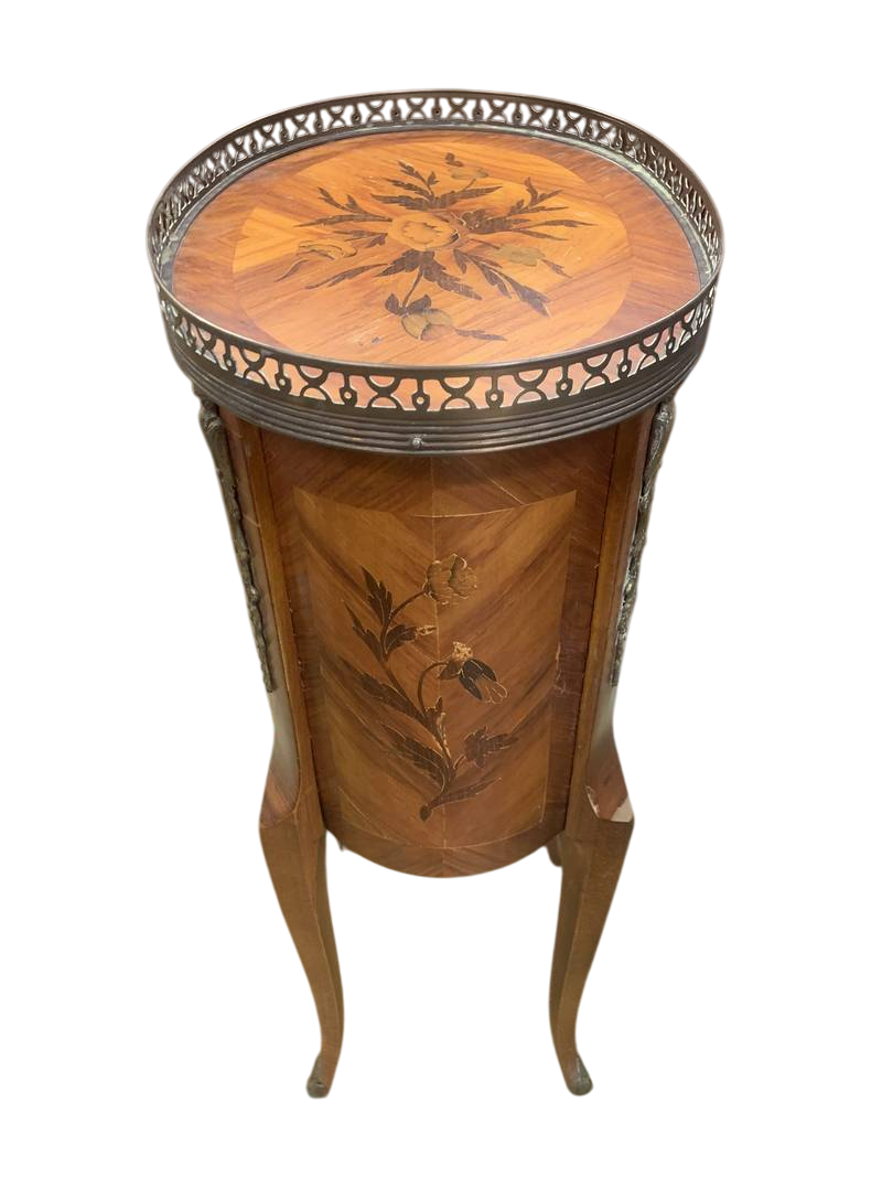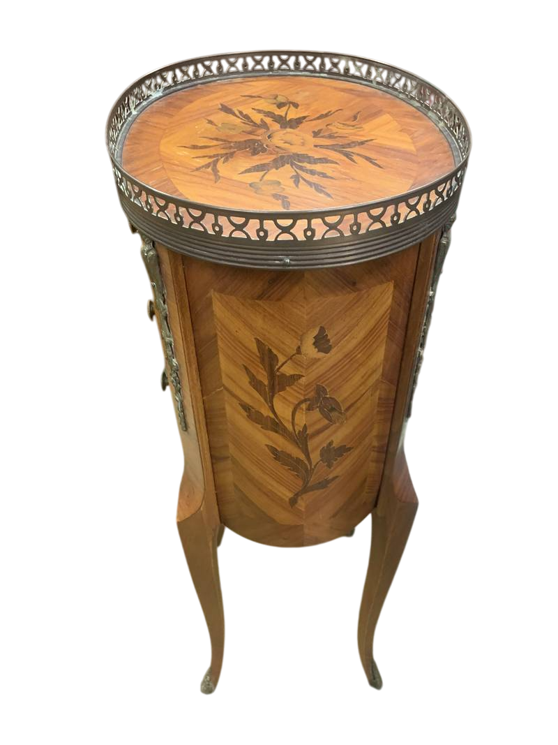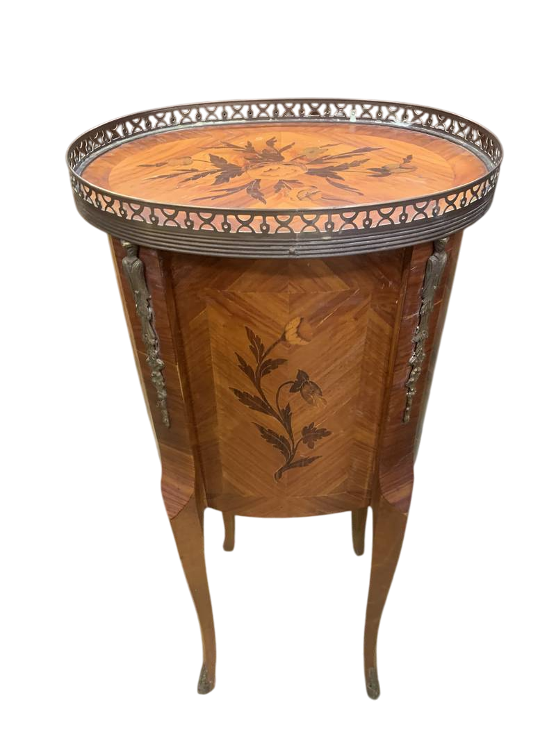 Mobiletto comodino francese a marquetterie con ringhierina dorata