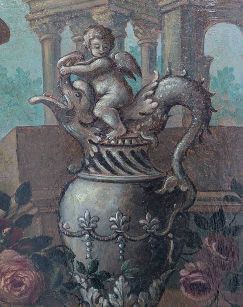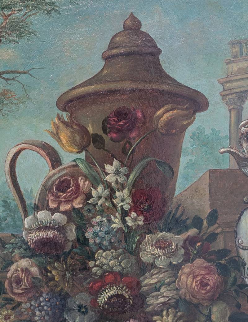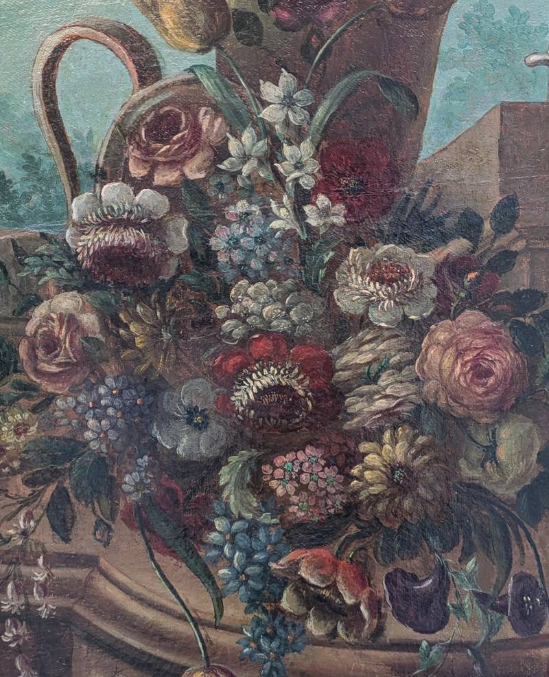 Natura morta con fiori e vasi, olio su tela – XVIII secolo