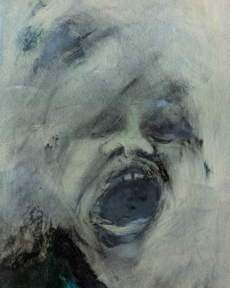 L’opera rappresenta un volto di una figura che urla, di cui si identificano solo gli elementi espressivi dispersi su un fondo verde.