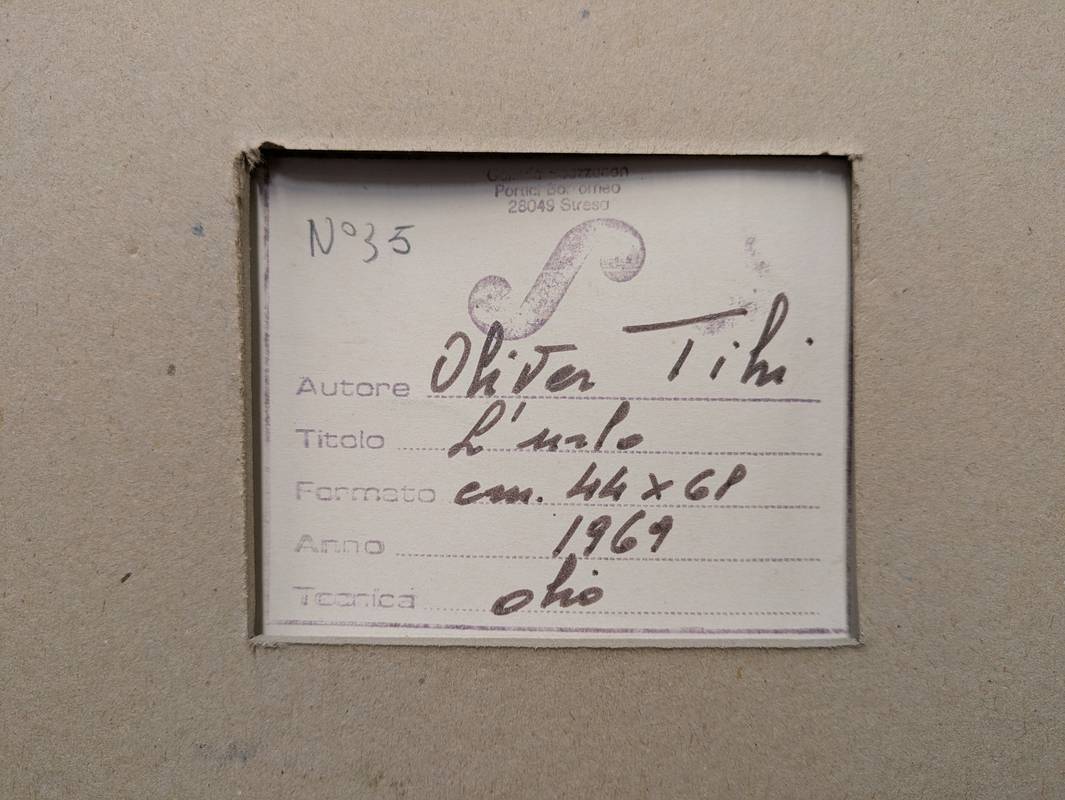 Dipinto a olio su carta firmato in basso a destra Oliver Tihi (1943-1995), datato 1969.